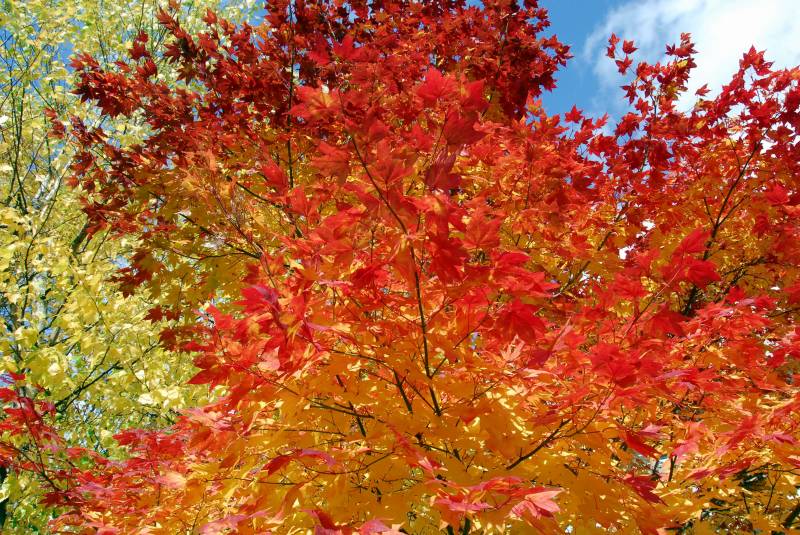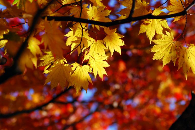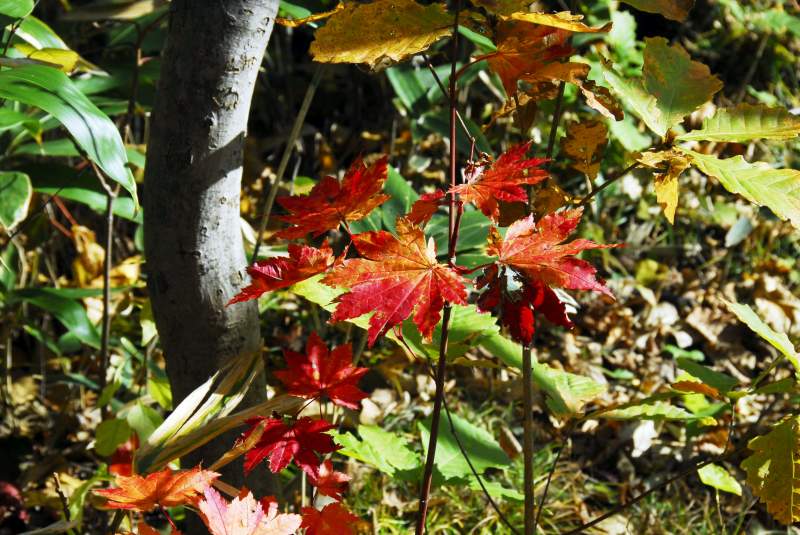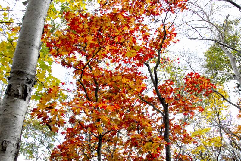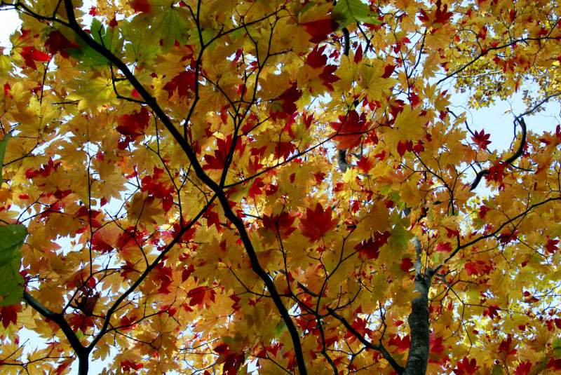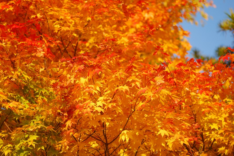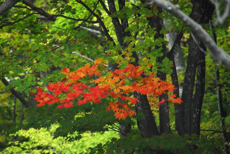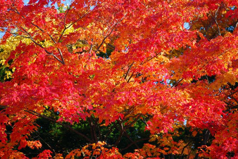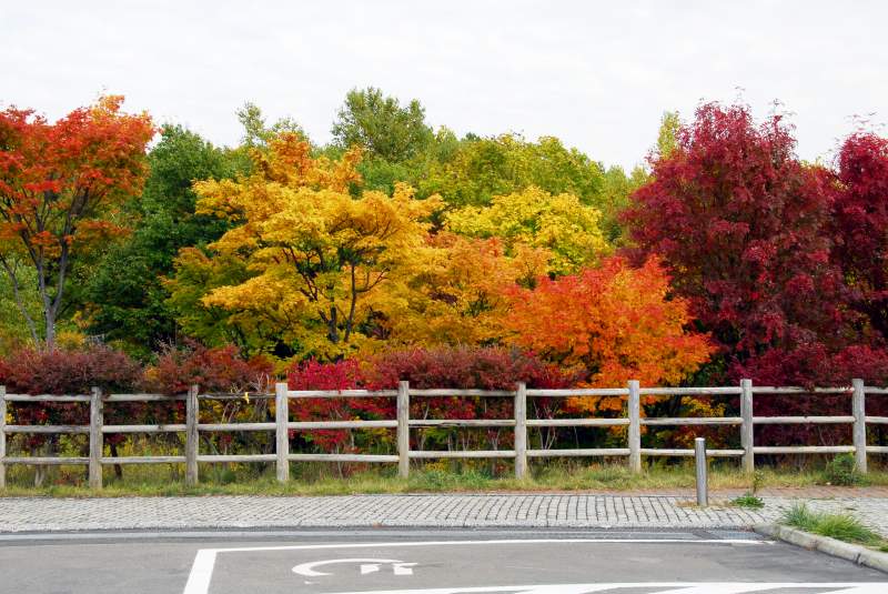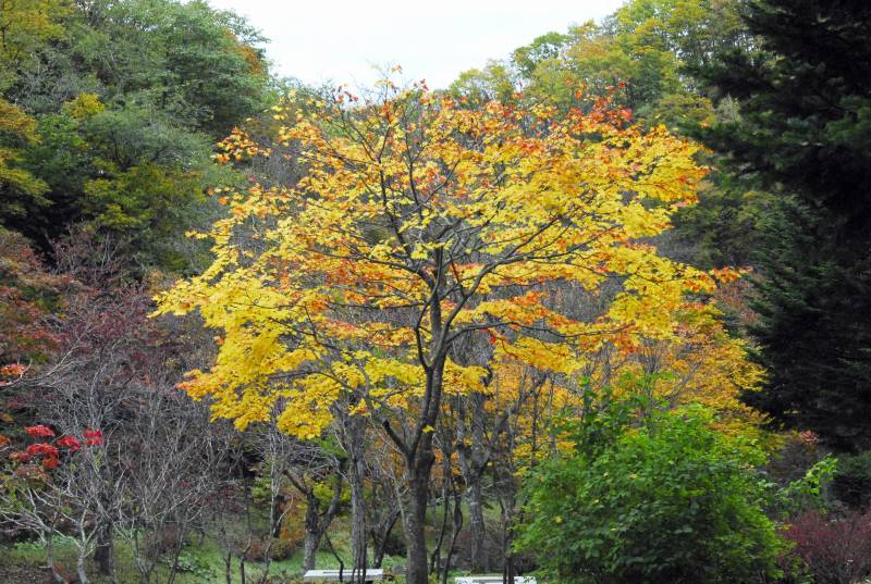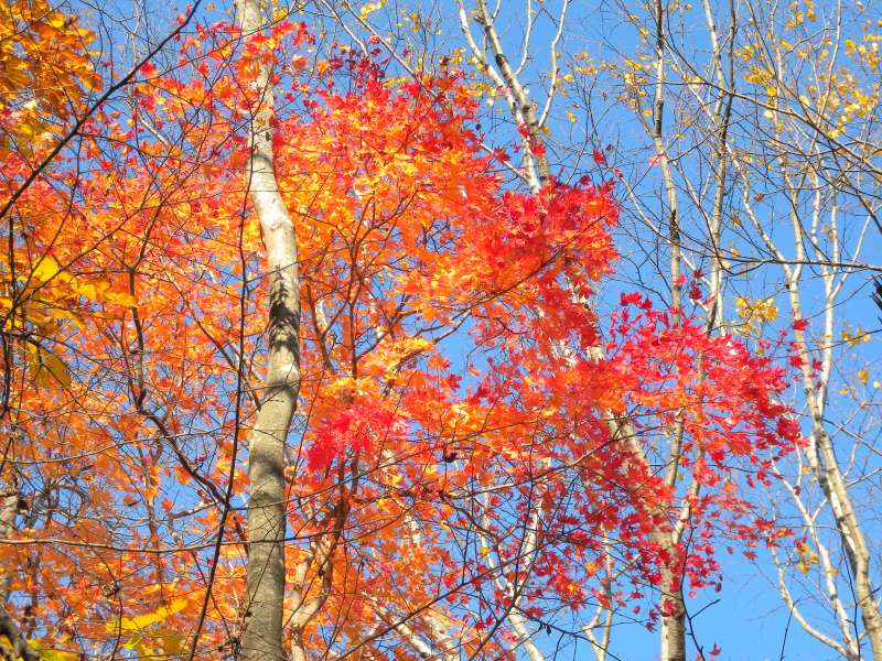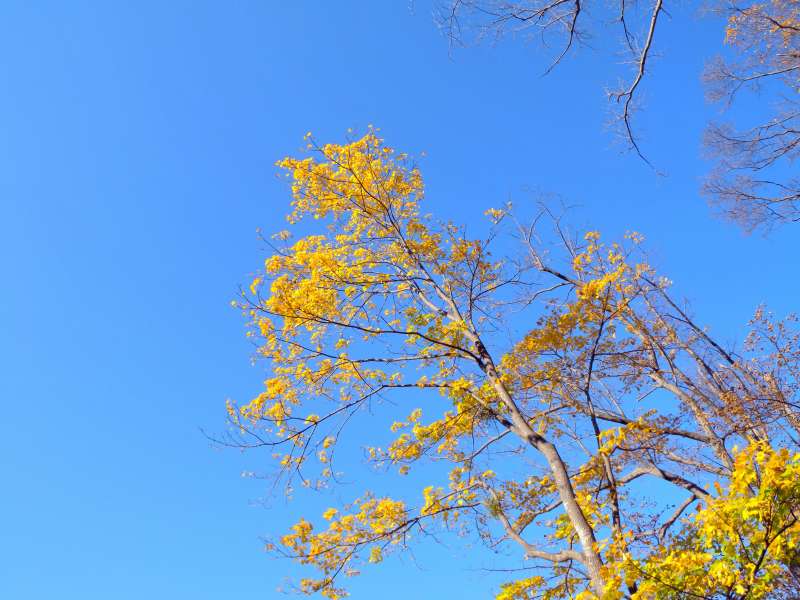 公園内の木々は全体的に見ると葉を落とし始めているようですが、樹木の種類によって既に落葉したものや、まだ頑張っているものなどに分かれるようです。