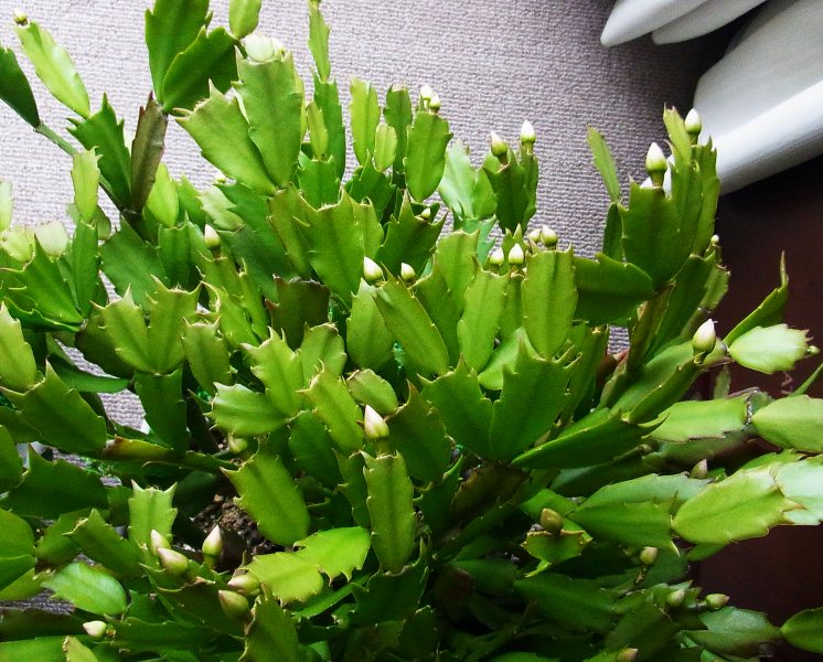 シャコバサボテンの蕾が日ごとに大きくなっています。
