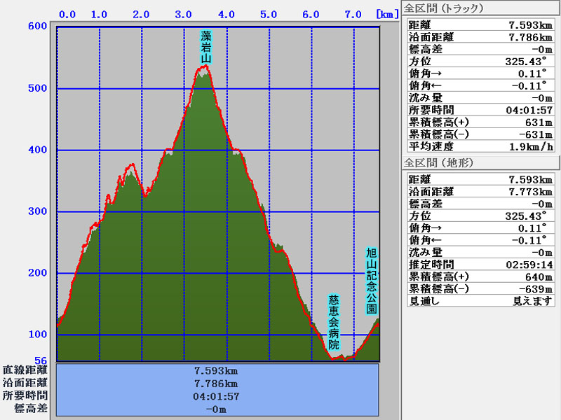 累積標高(+)地形    640m