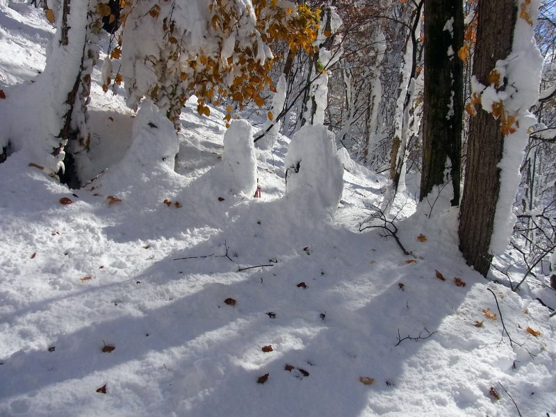登山道の雪が融けて、大変歩きづらい状態に