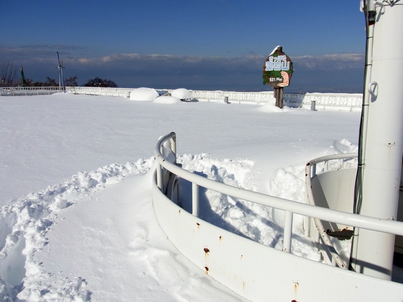 展望台の裏側には、雪が多く残っています。