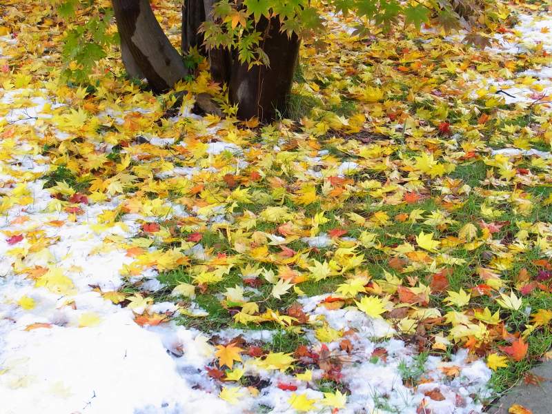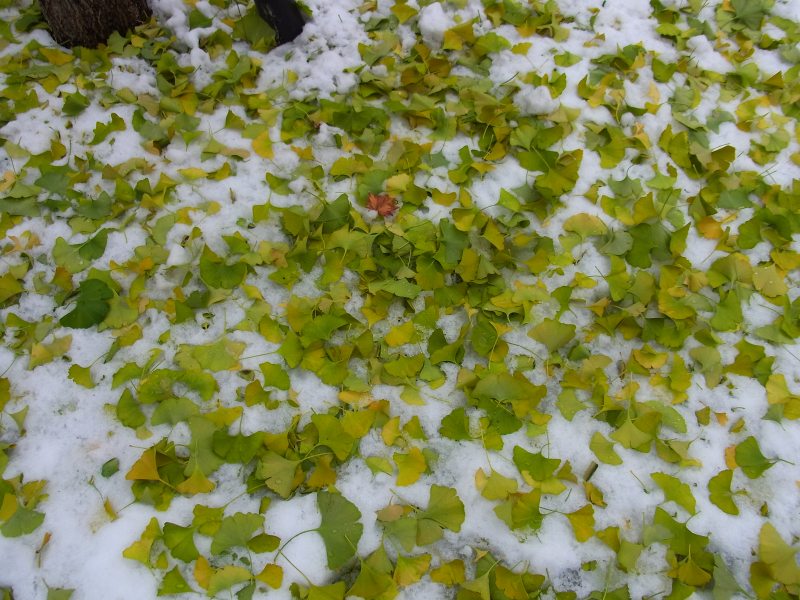 慈恵会病院にあるモミジがこの雪で大分落ちて