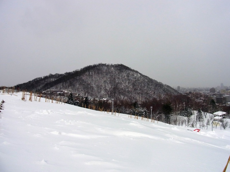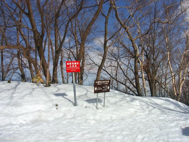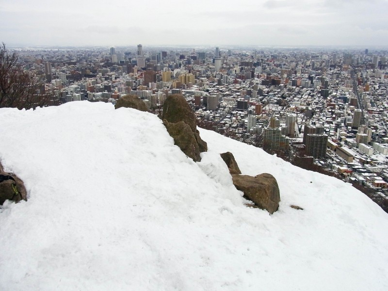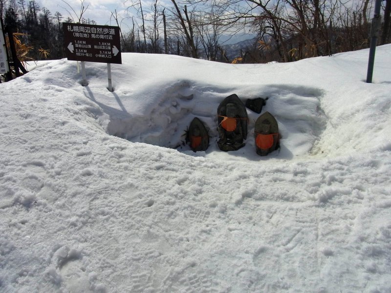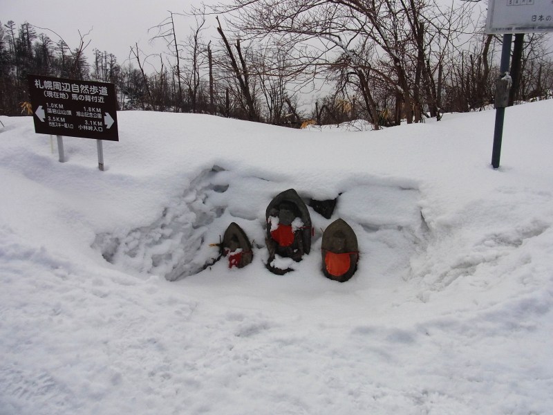 藻岩山の登山道には、まだ確り雪があります。登山道の表面は凍って硬くなっています。