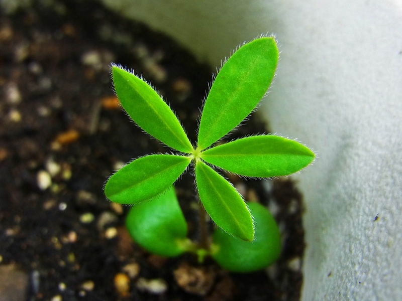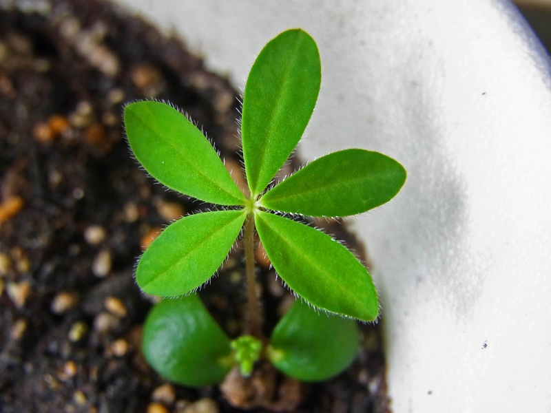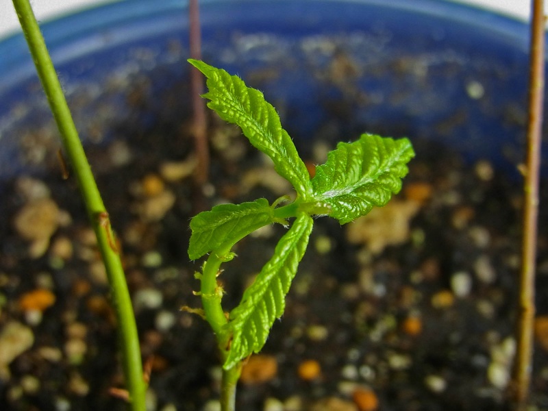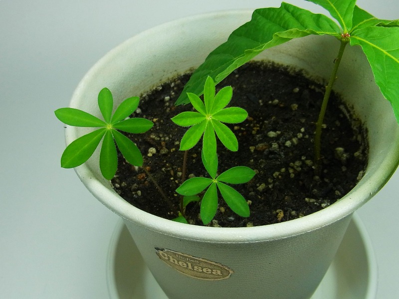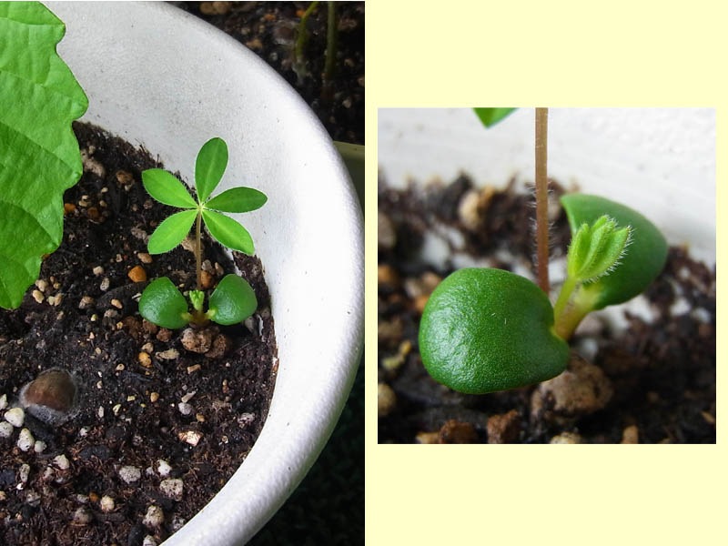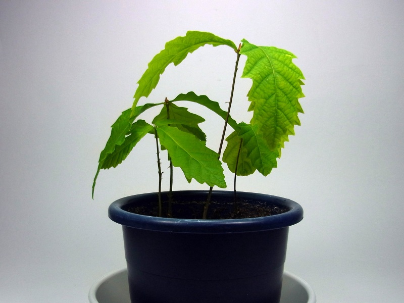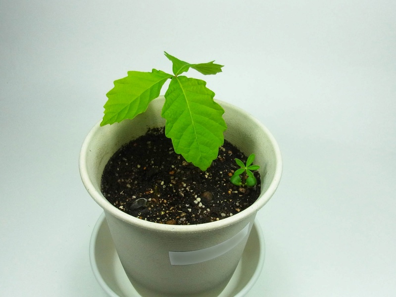 最後に発芽したドングリは順調に育っていますが、まだ2枚葉の状態です。