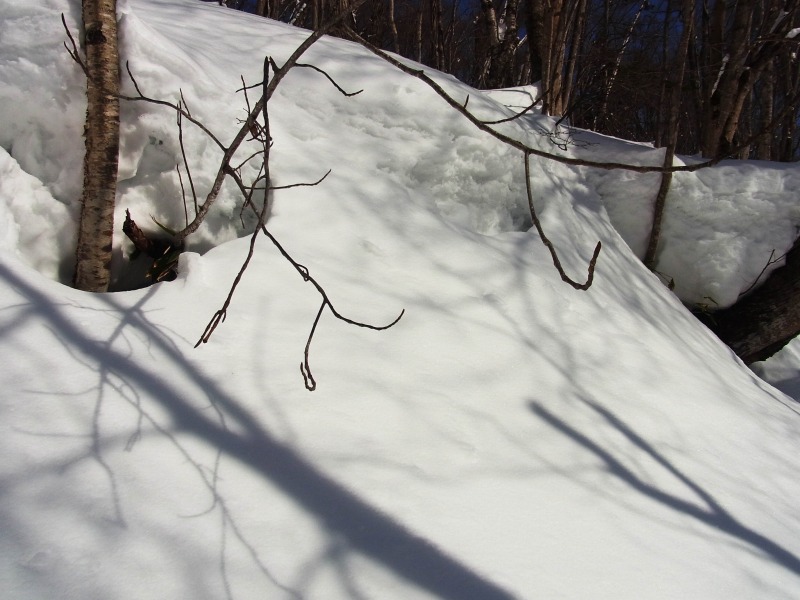 登山道で、地面が露出している所はまだありません。今日は1回だけ踏み抜きました。