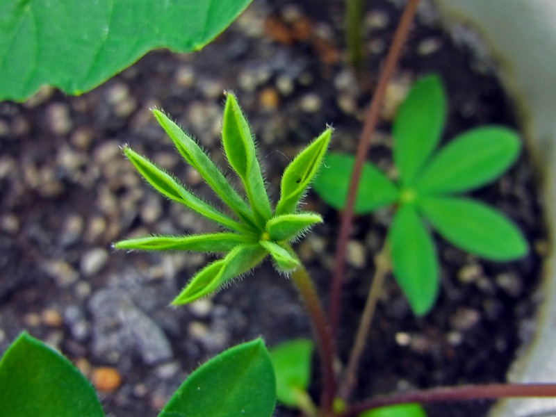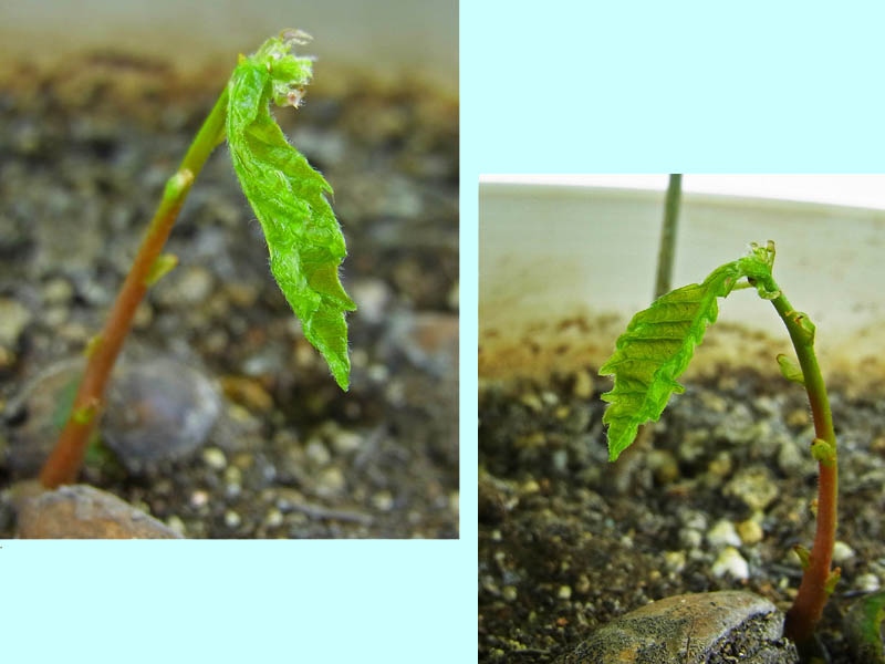 最後に発芽したドングリは、6個目の葉を拡げ始めました。