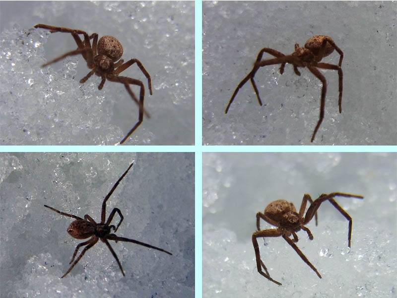 この昆虫は、カメラを近づけると雪の中に逃げ込みます。