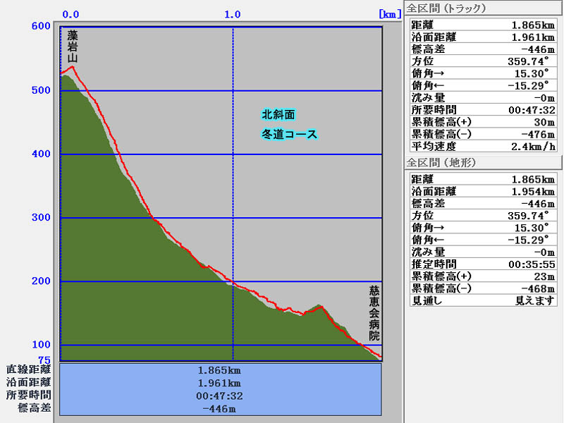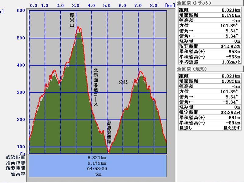 総上昇量   609m