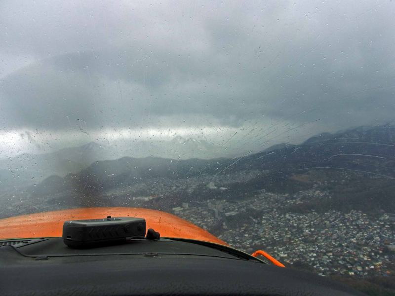 今日は、最近同乗させて貰った飛行で、運悪く降雨にあった時の写真です。