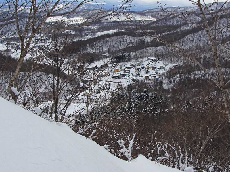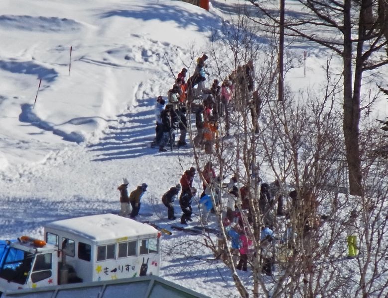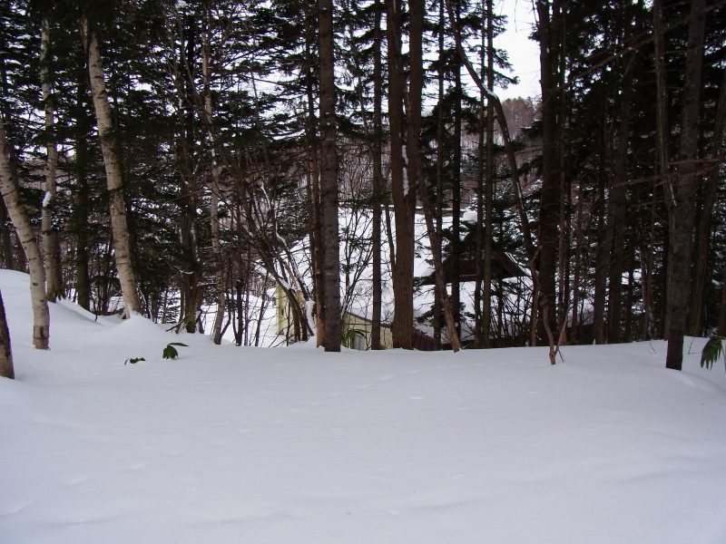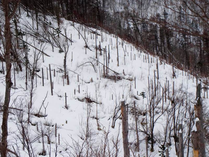 今日は、この急斜面の2/3程度下った所で12時近くになったので、そこで昼食を摂り引き返すことにしました。