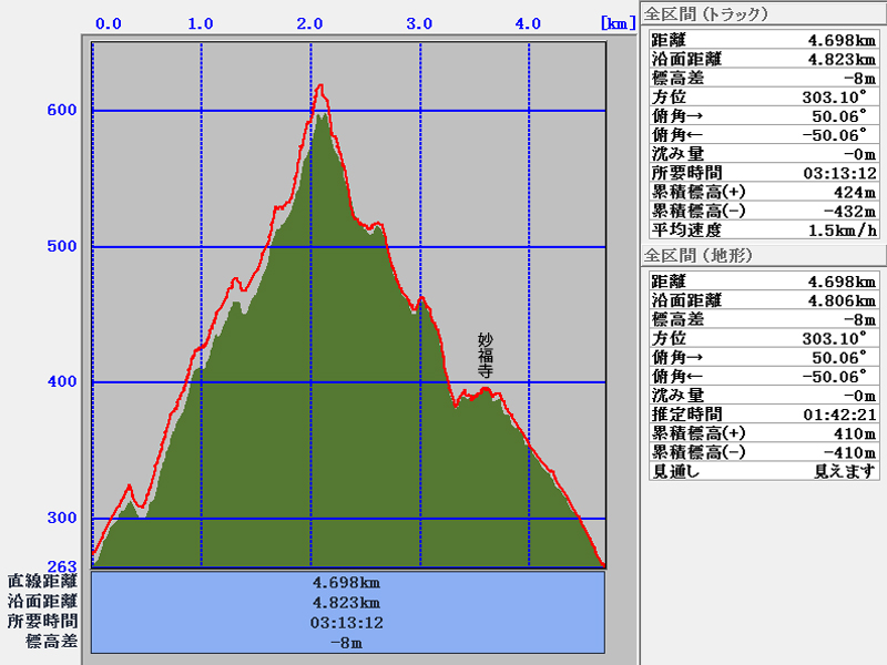 総上昇量   444m
