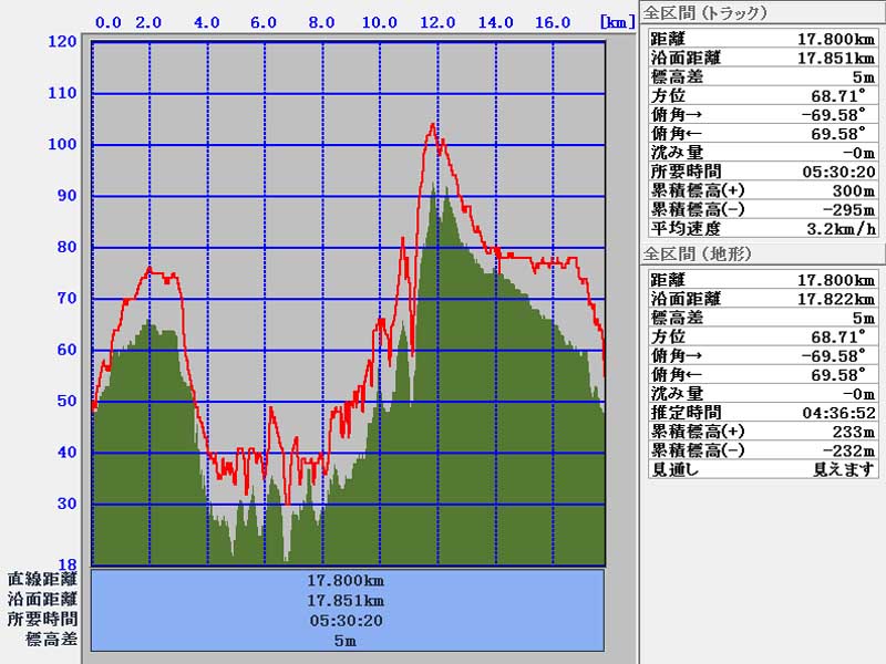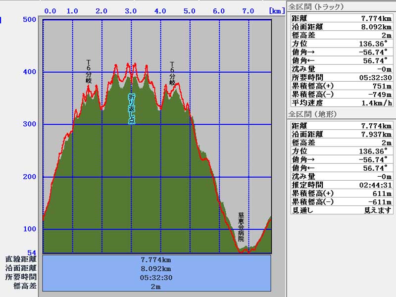 累積標高(+)地形    611m