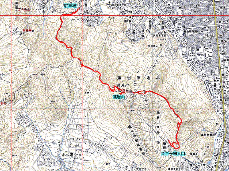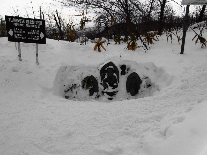 予想外のラッセルで時間が掛かったうえ、足も大分疲労していたので、藻岩山には登らずに慈恵会病院経由で駐車場に戻りました。