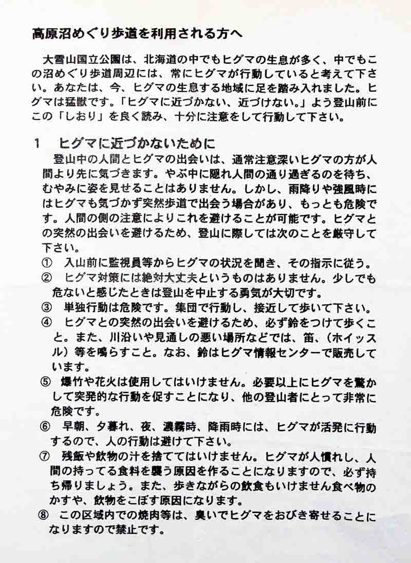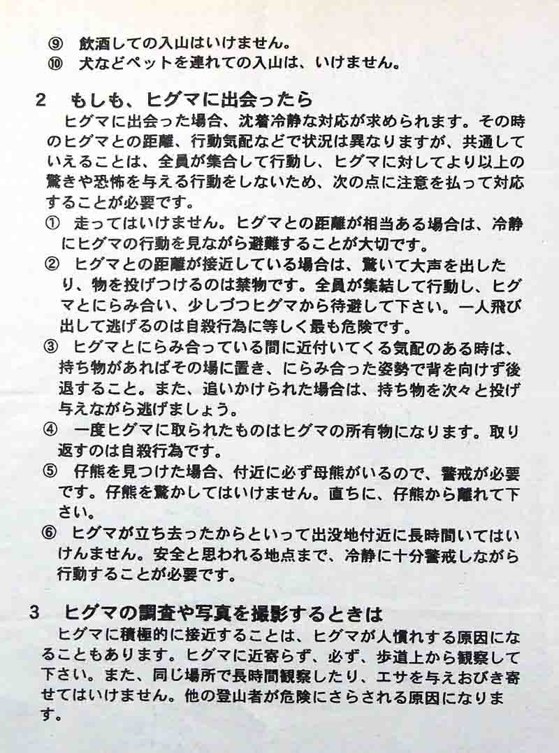 登山者ができる一番のヒグマ対策は、ヒグマのいる危険性のある山には登らないことですが、それでは、北海道では登山ができません。