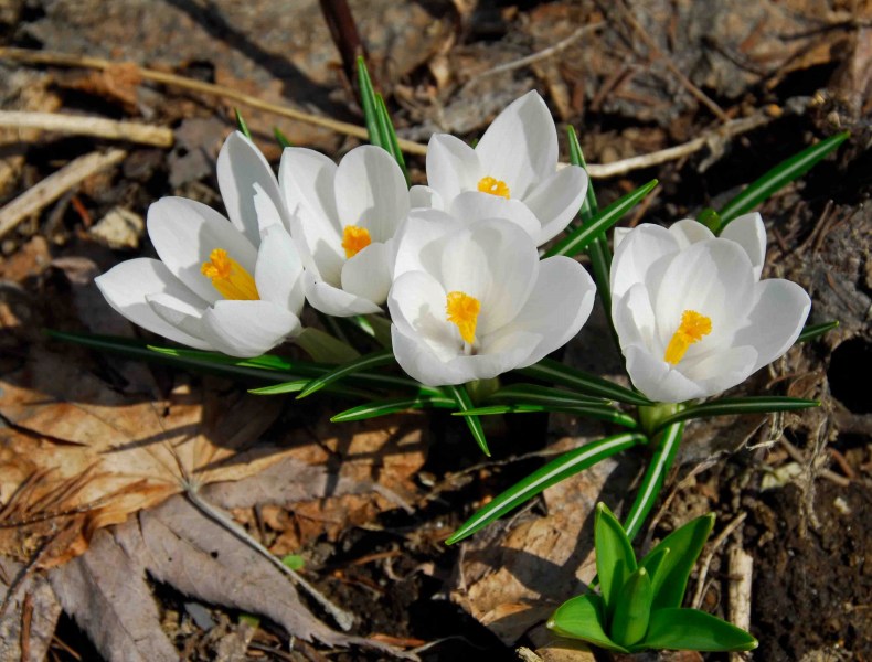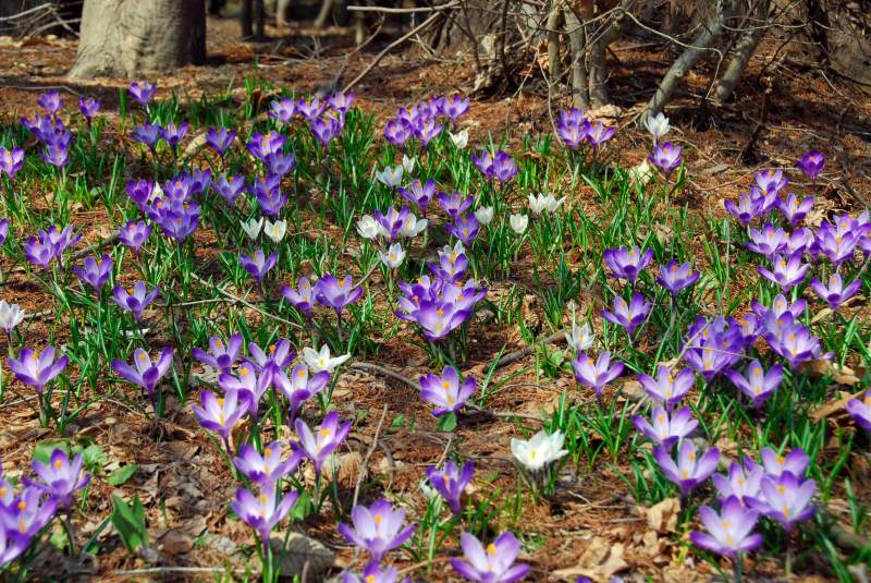 近所のお宅の庭では、クロッカスが綺麗に咲いています。