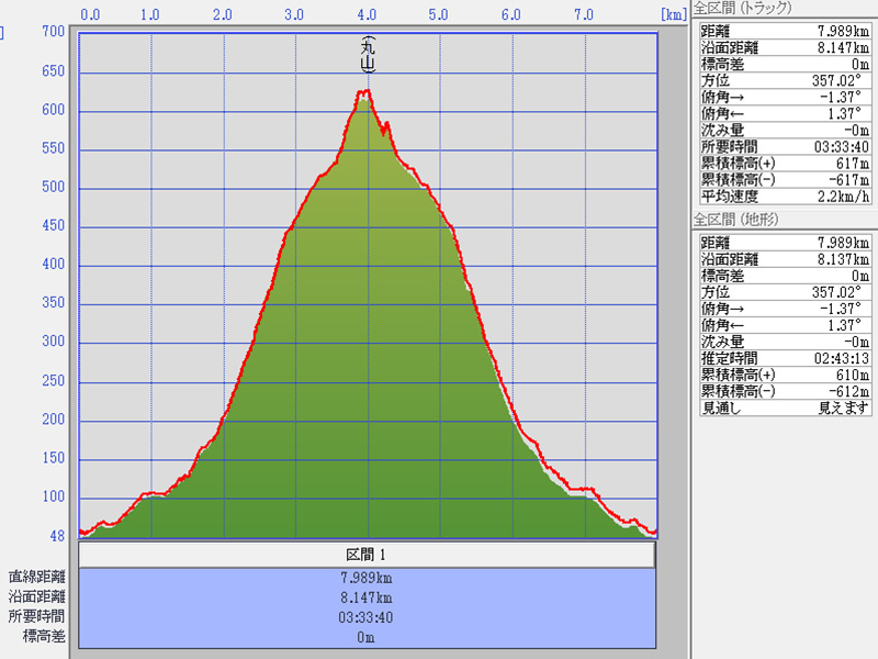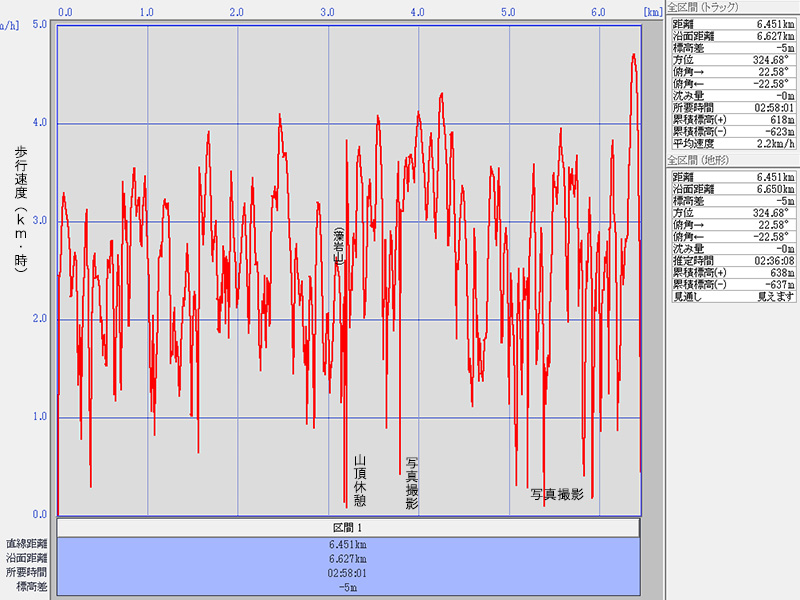 山頂着      09時42分 (1時間15分) (2時間11分)