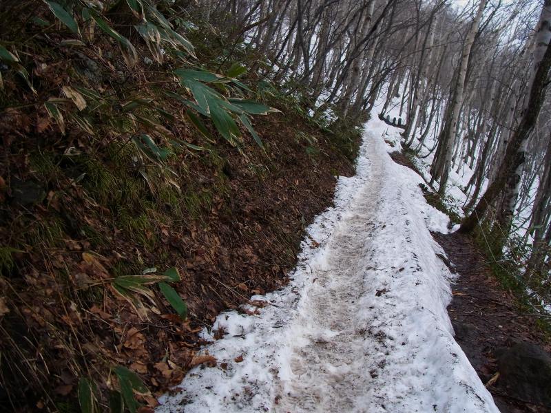 ただ、標高が800mを超えるので、例年日陰部分の登山道には雪が残っているので、今年も多少の積雪があることは考慮していました。