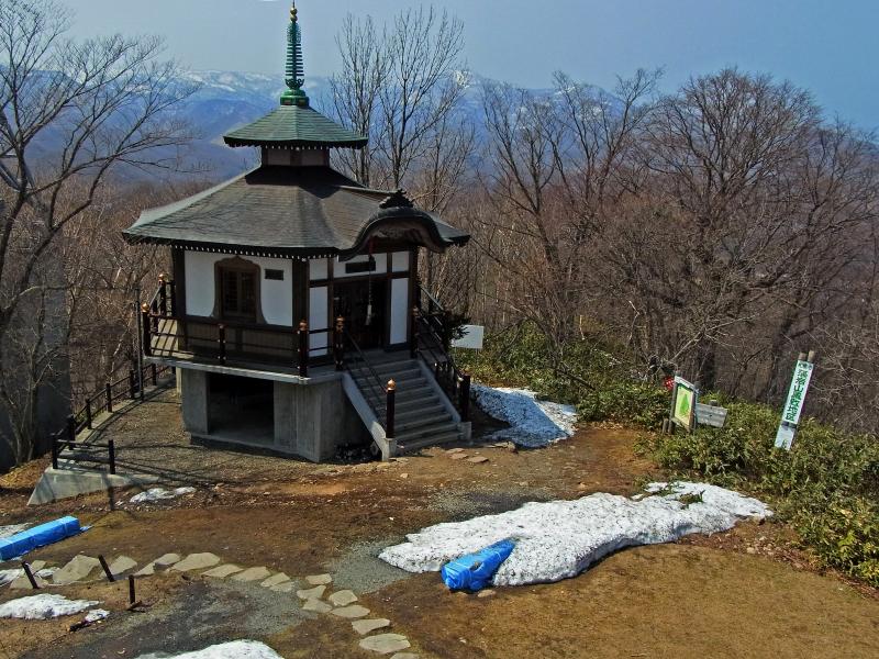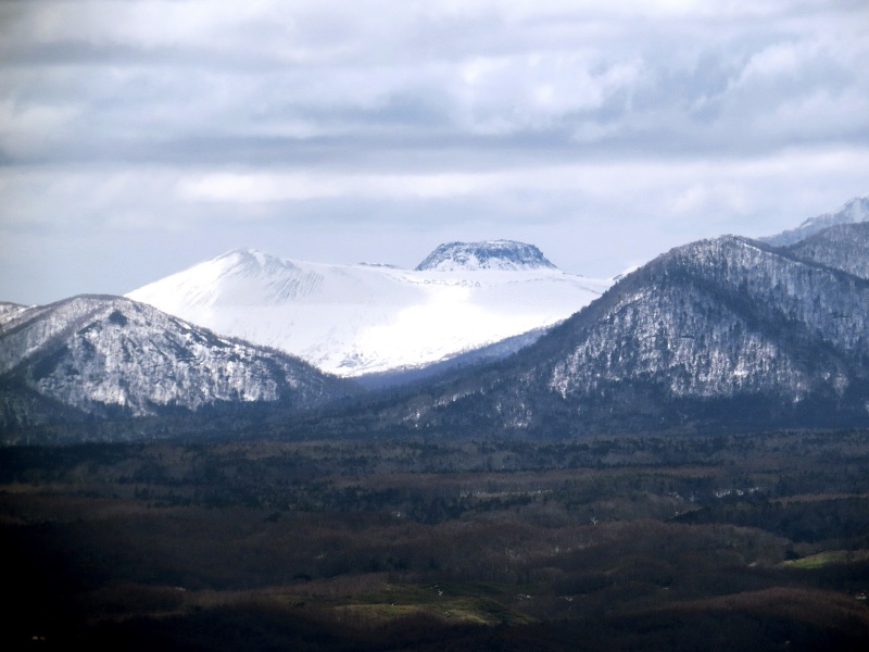 山頂から遠方の山を見ると、まだたっぷり雪が残っていました。