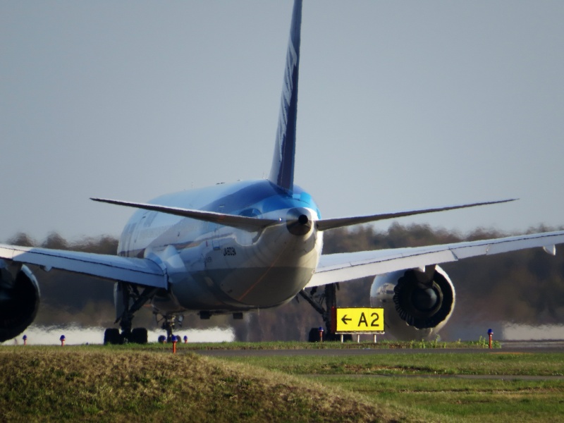通常この風向では、この場所からは出発機の撮影はできませんが、偶然にも到着機が出発する段階になってまた風が変わり、同じ場所で今度は出発機の撮影ができました。