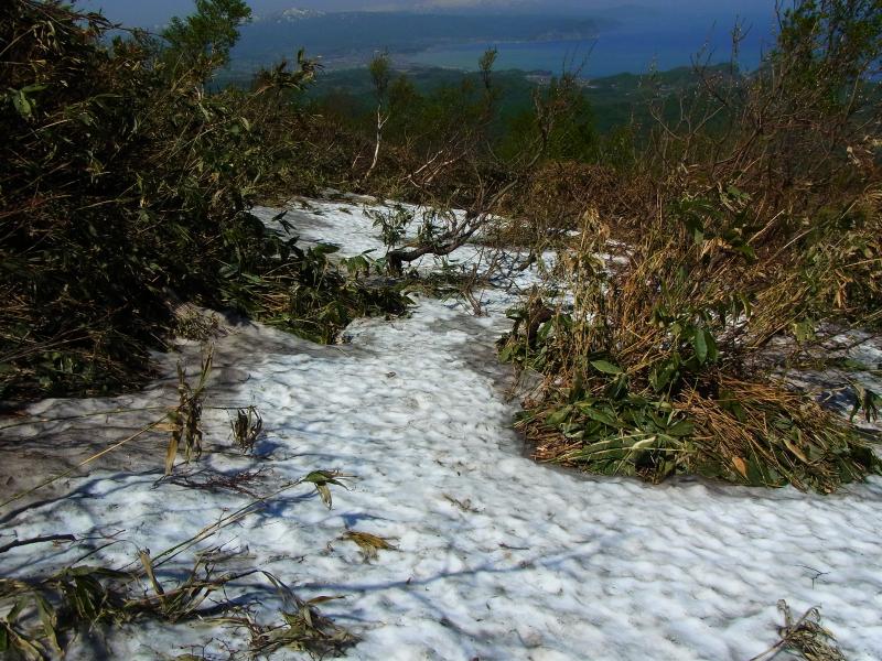稜線を過ぎて、丸山の本体の登りになると雪渓が1ヶ所現れました。