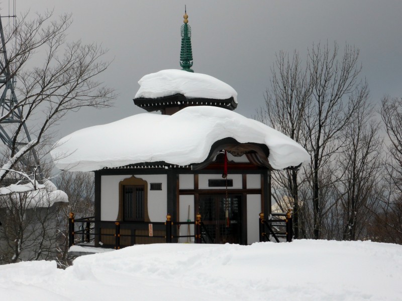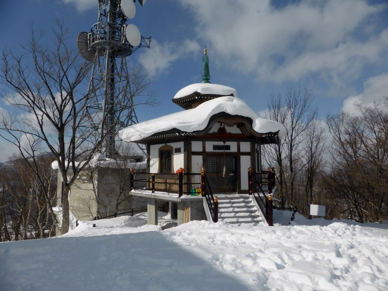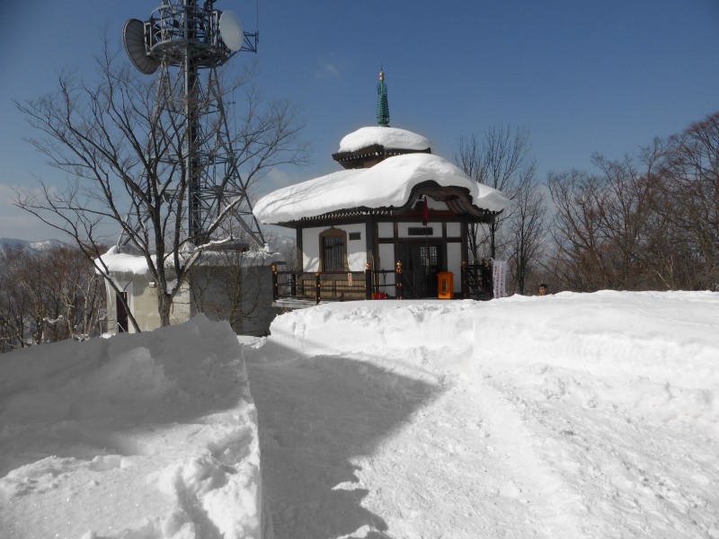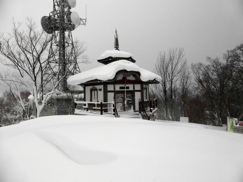 手稲山山頂は雪が多く、山頂の神社は雪の中でした。