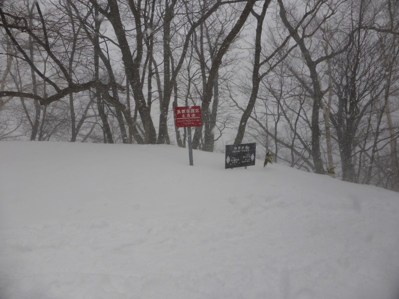 往路ではまだ雪が締まっていてアイゼンが効く状態でしたので、山頂までそのままアイゼンで歩きました。