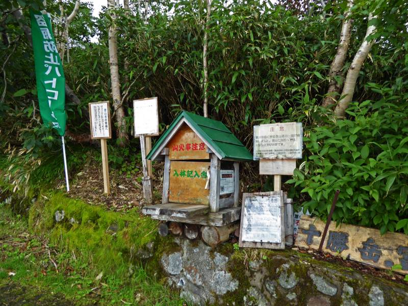 駐車場に到着時点で、既に車が数台駐車していましたが、入山届けへの記入はありませんでした。