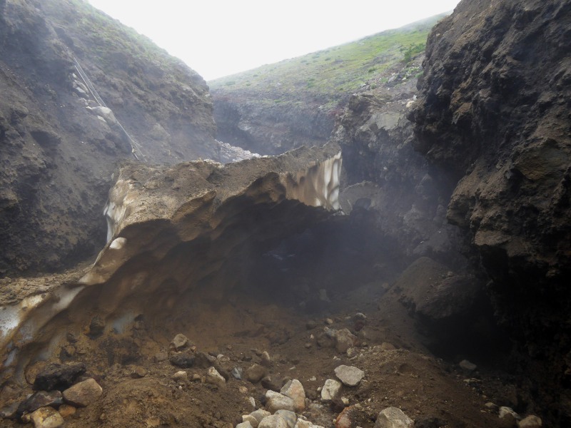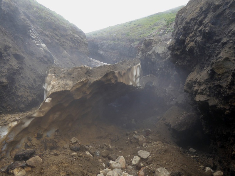 山頂付近は火口側から吹き上げる風が強烈で、携帯風速計で計測はしませんでしたが20m/sを超えていたと思われます。