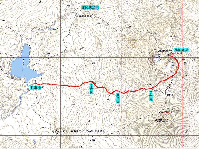 オンネトーコースで、雌阿寒岳山頂を往復しました。