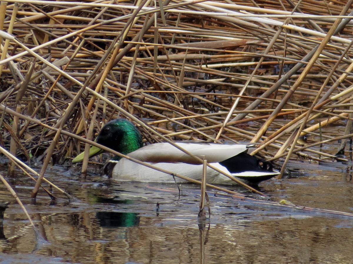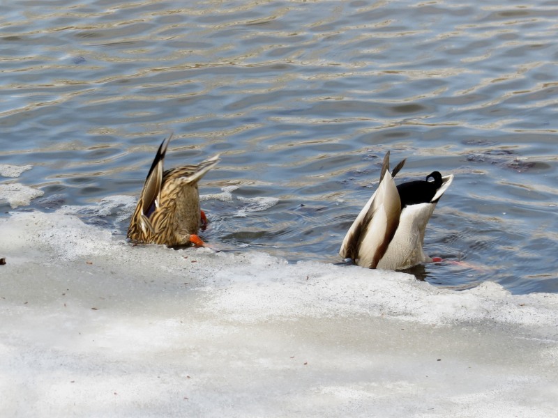 人工池にカイツブリが2羽遊びに来ていました。マガモは見かけませんでした。(写真4)