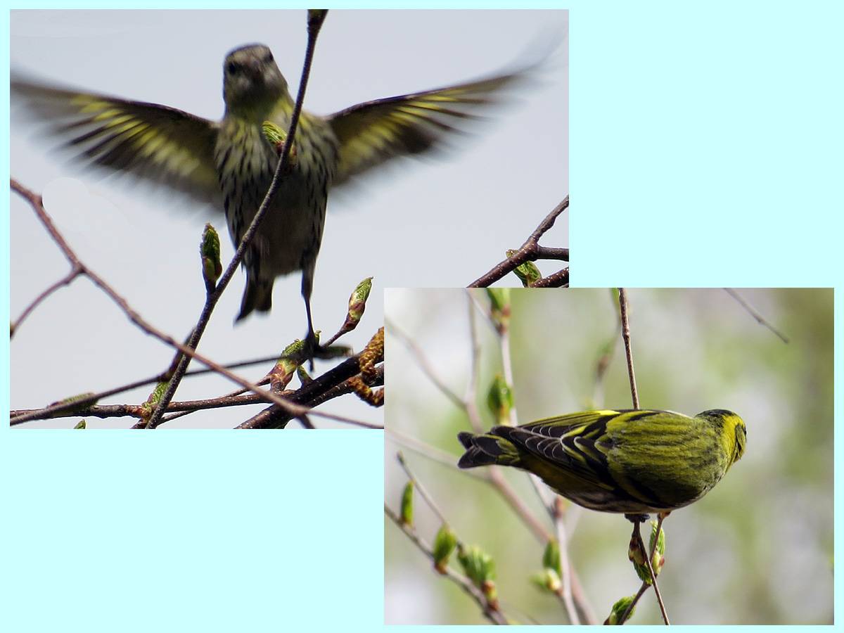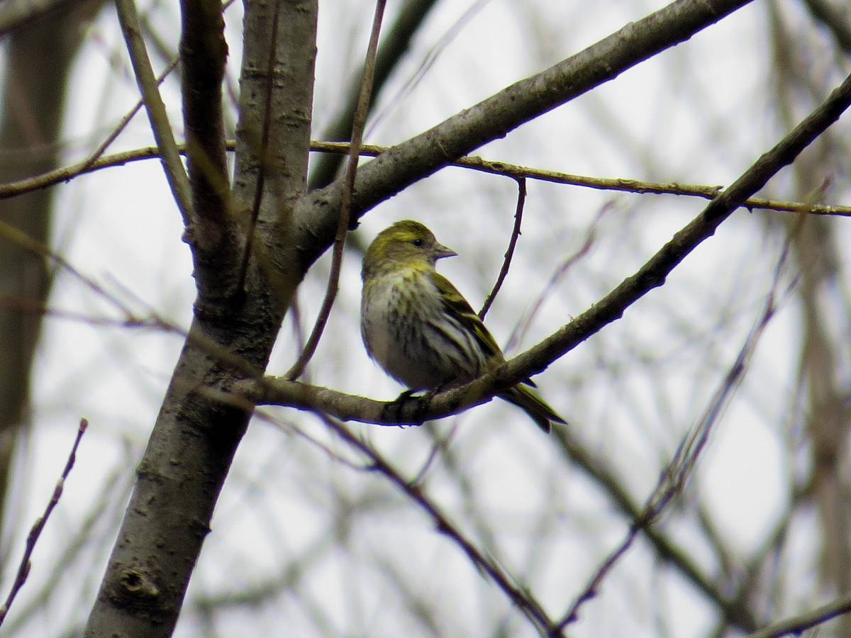 マヒワが数十羽の群れで移動していました。