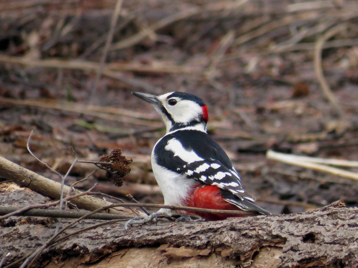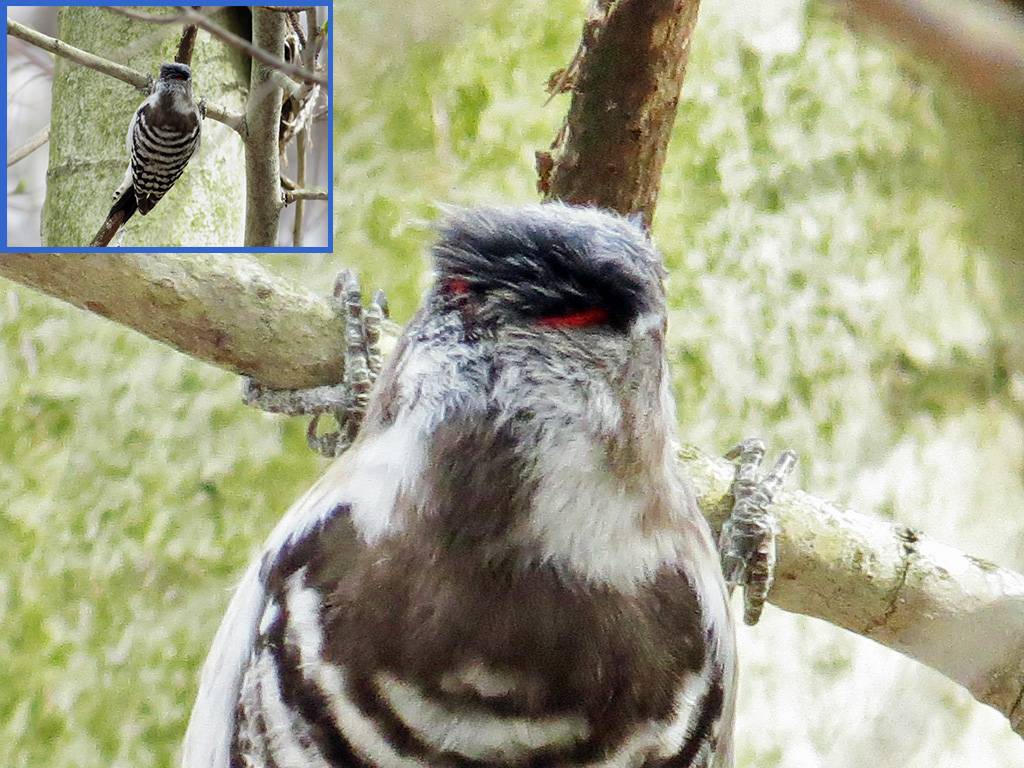 コゲラを撮影できたので、パソコンで選択しているときに、コゲラの後頭部にある赤斑を見つけました。(写真5)