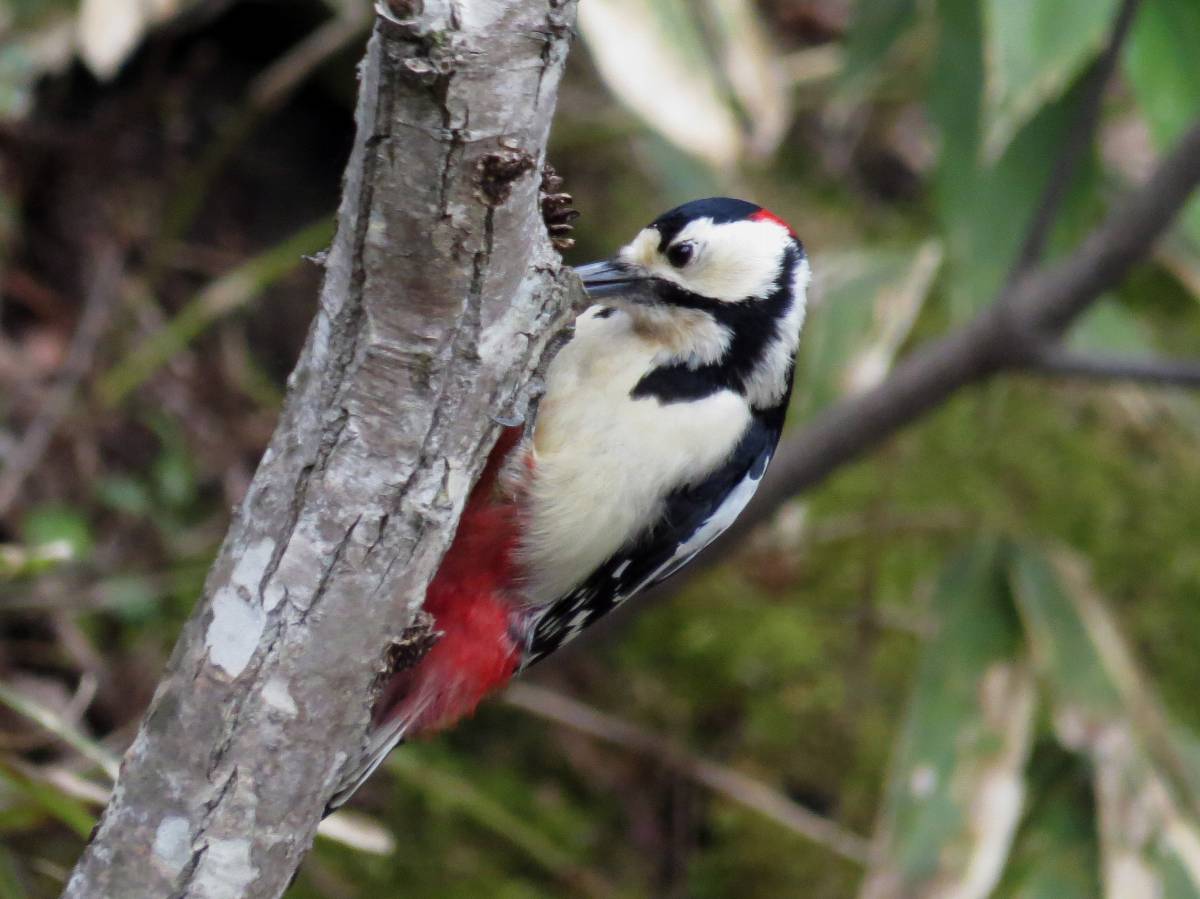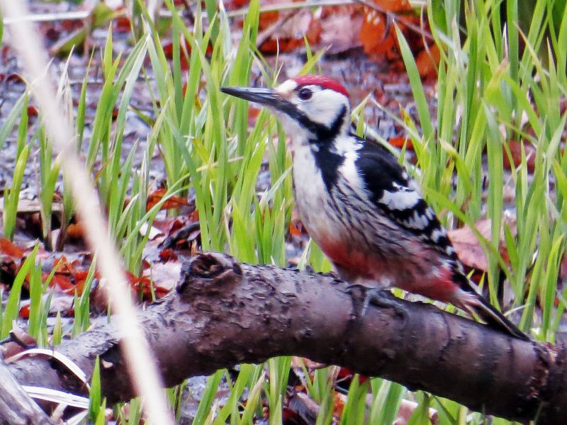 コゲラの後頭部にある赤斑を確認できます。