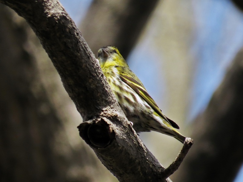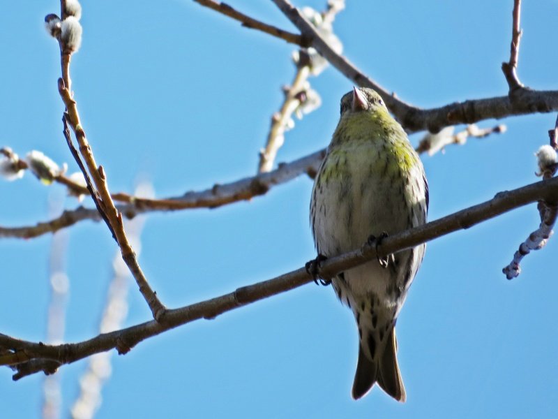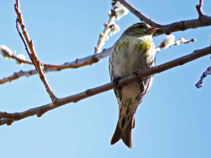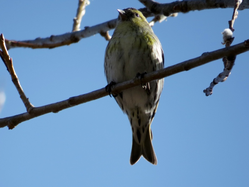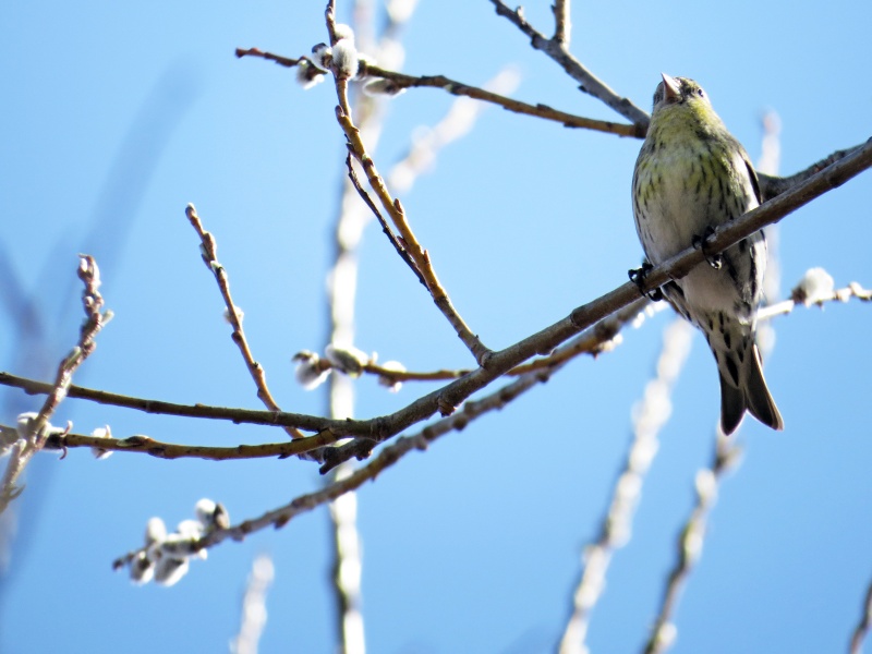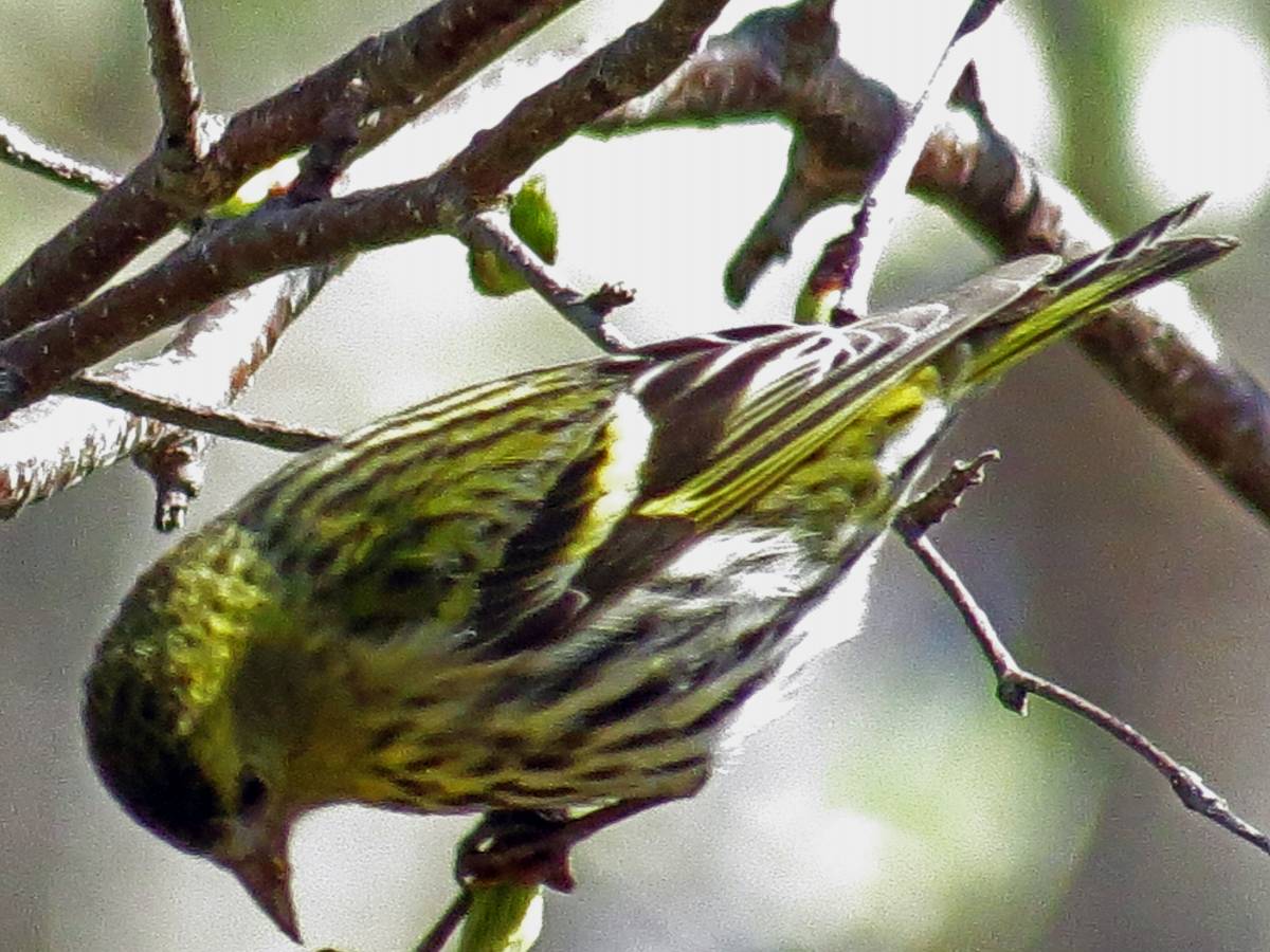 今日は晴天のうえ、マヒワの群れが背の高い木の上の方にとまったため、完全な逆光になり撮影に苦労しました。
