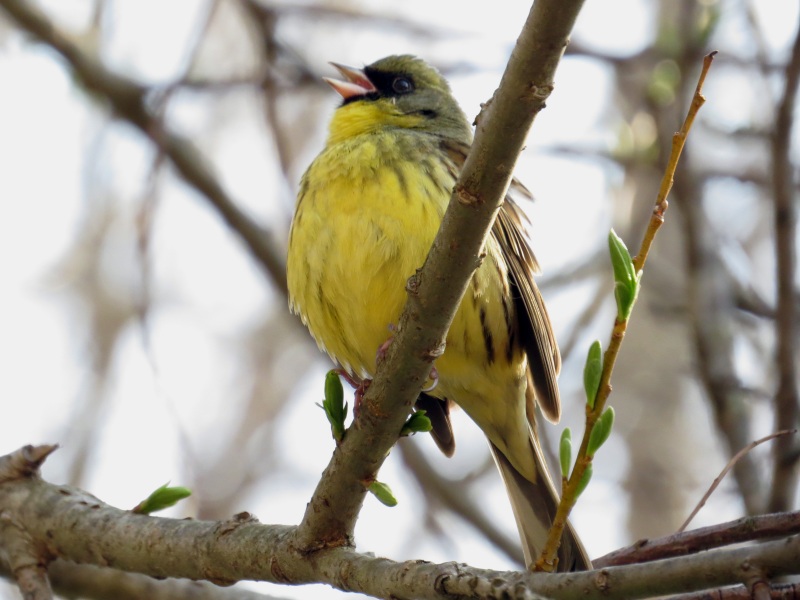 湿地帯と付近の遊歩道を何度か歩いて野鳥を探している時に、普段は聞き慣れない素敵な囀りが聞こえて来ました。