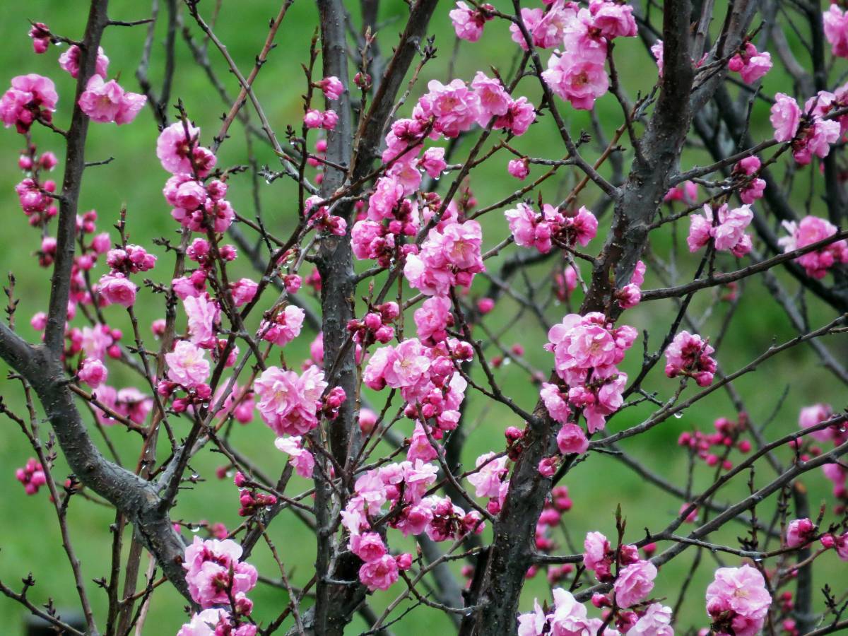 さすがに、降雨のために公園を訪れている人は疎らでしたが、梅林は雨に濡れてしっとりとして大変綺麗でした。