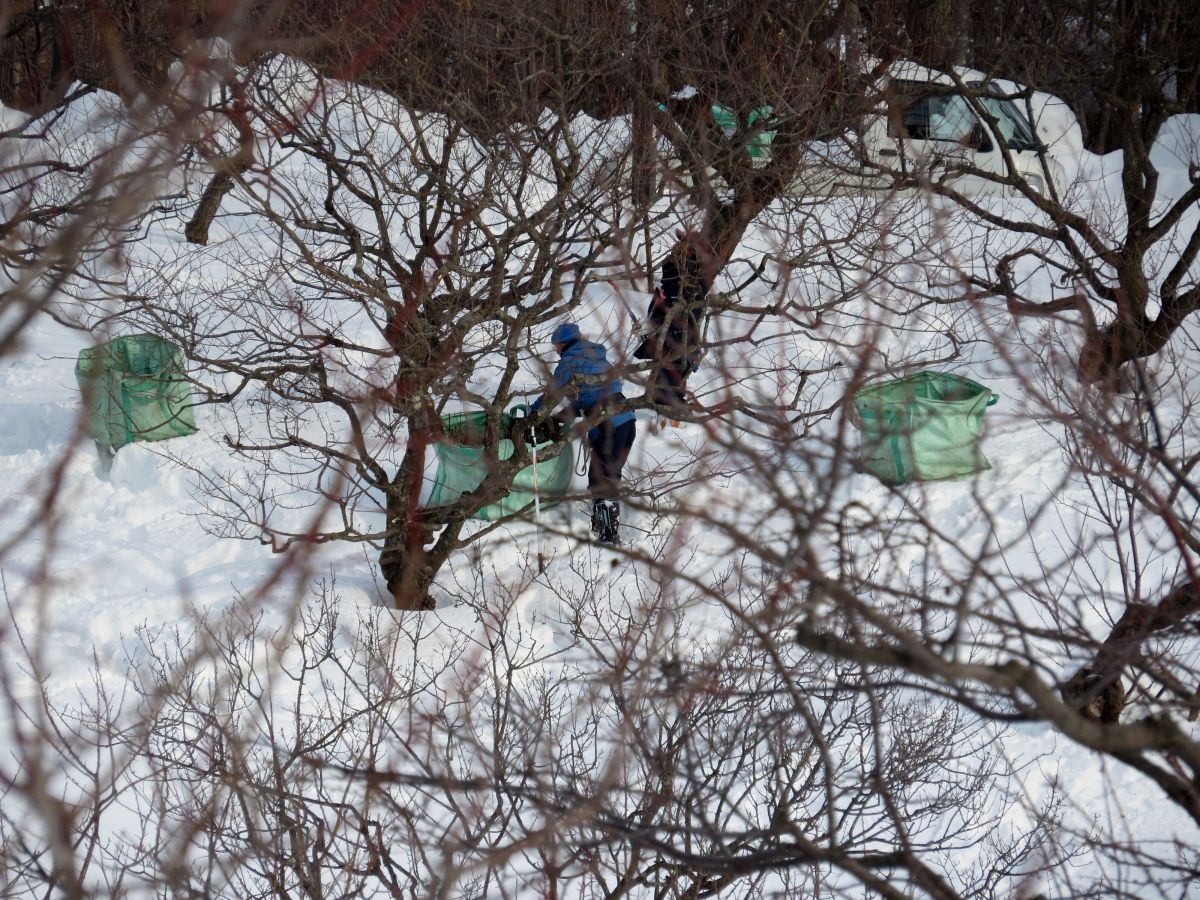 厳冬期は、雪が降っても払い落とすだけで済むので、雨傘などは必要ありません。