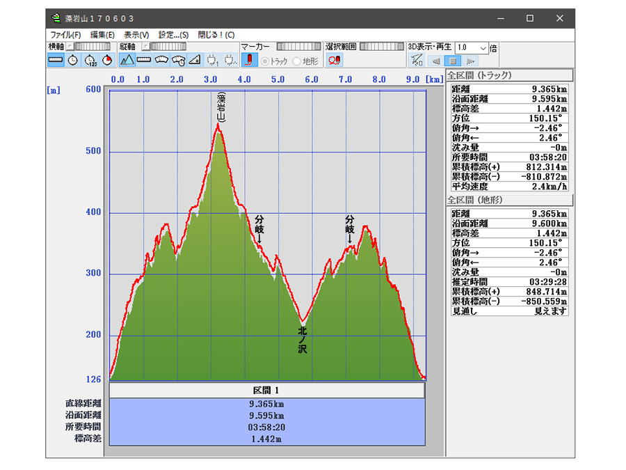 山頂着      10時36分 (1時間27分) (2時間45分)