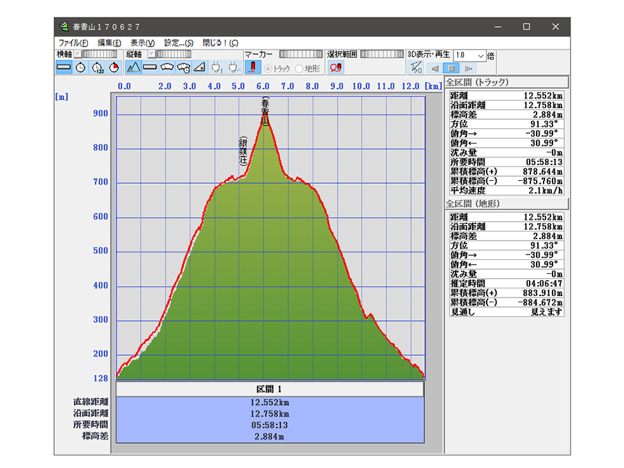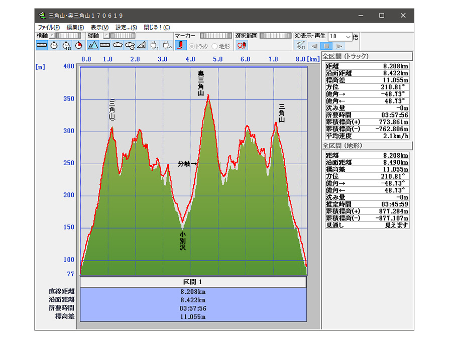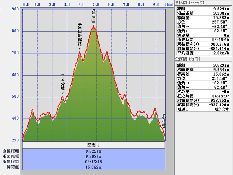 登山道が前日の雨で少し滑りやすかったことと、無理をせずにゆっくり歩いたことなどから、妥当な所要時間と思われます。