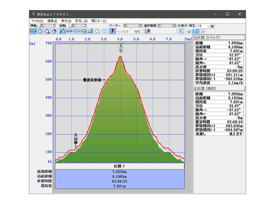 山頂着      11時22分 (0時間43分) (3時間09分)