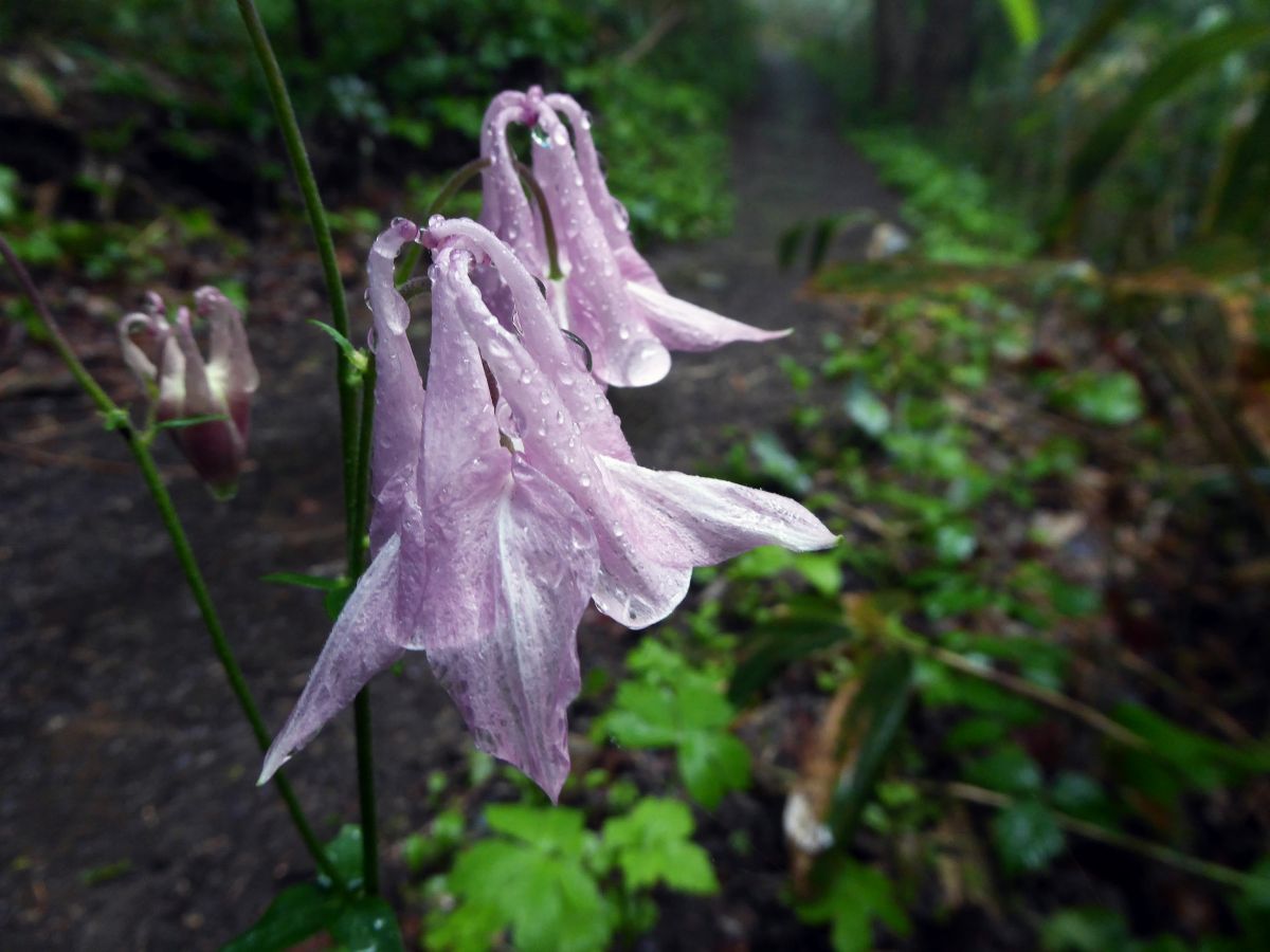 舗装は乾いていますが、登山道は濡れています。
