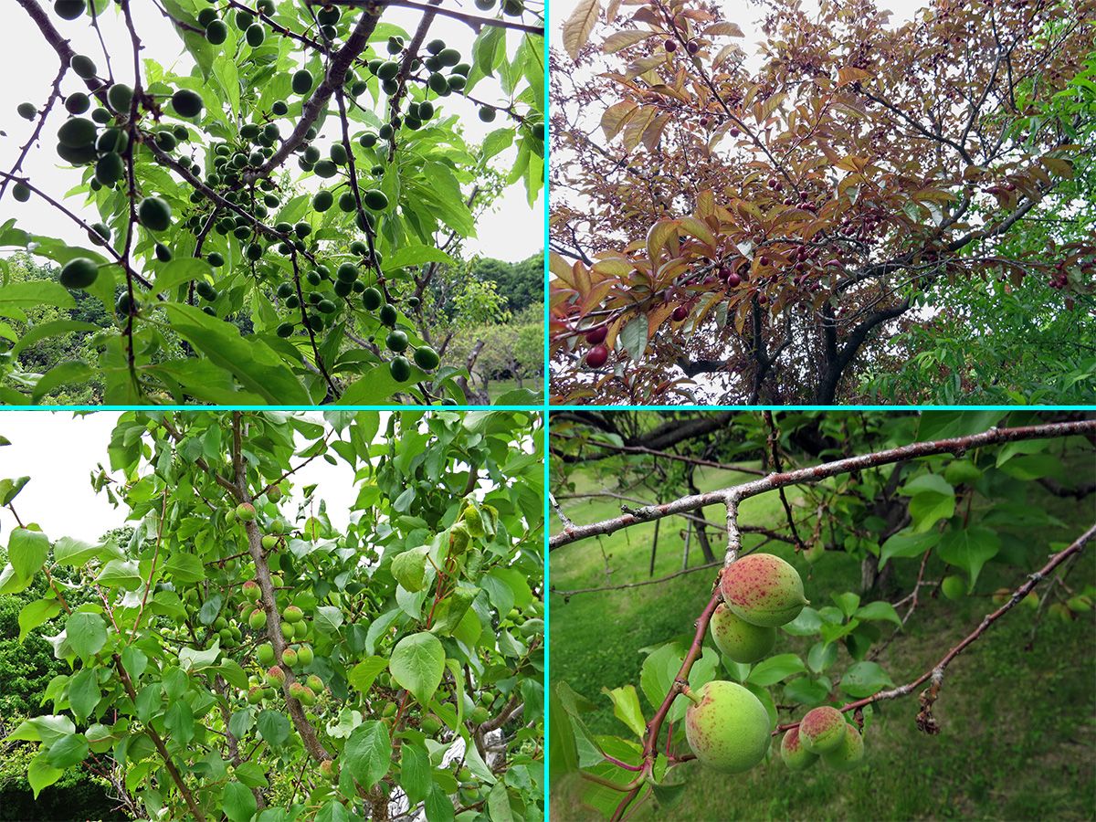 梅林では、丘になっている斜面で、梅の実が大量に落ちていました。