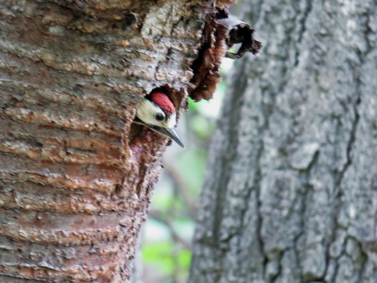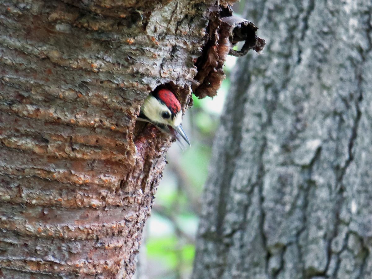 営巣中だったアカゲラの巣の場所に行ってみましたが、既に巣立ったようでした。