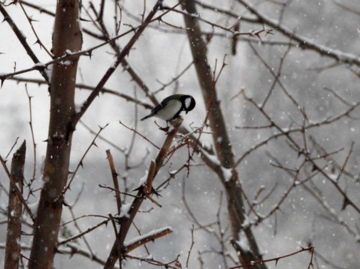 公園滞在中の90%ぐらいは雪が降っていたので、野鳥達も姿を現しませんでした。