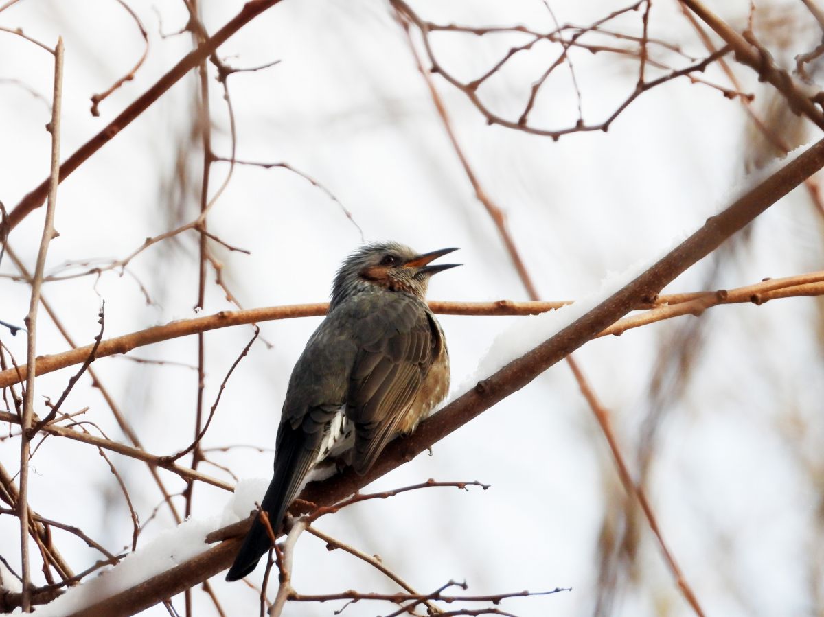 諦めかけていたときに、ヒヨドリが数羽何時もの場所を訪れてくれました。