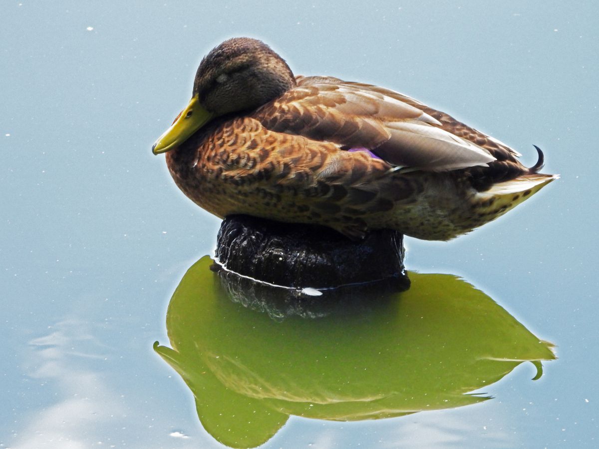 人工池を2回目に訪れたときに、水鳥を一羽見かけました。