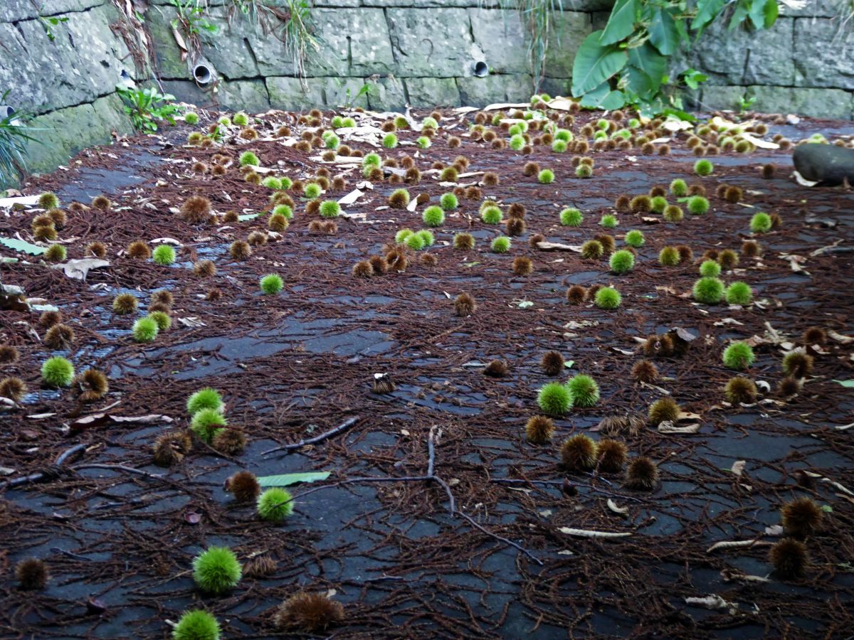 梅林では、スモモの実が熟して、自然落果をしています。(写真9)