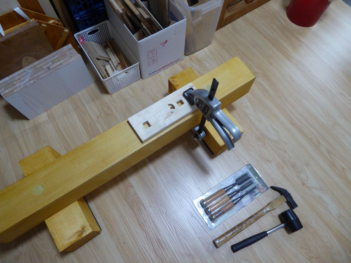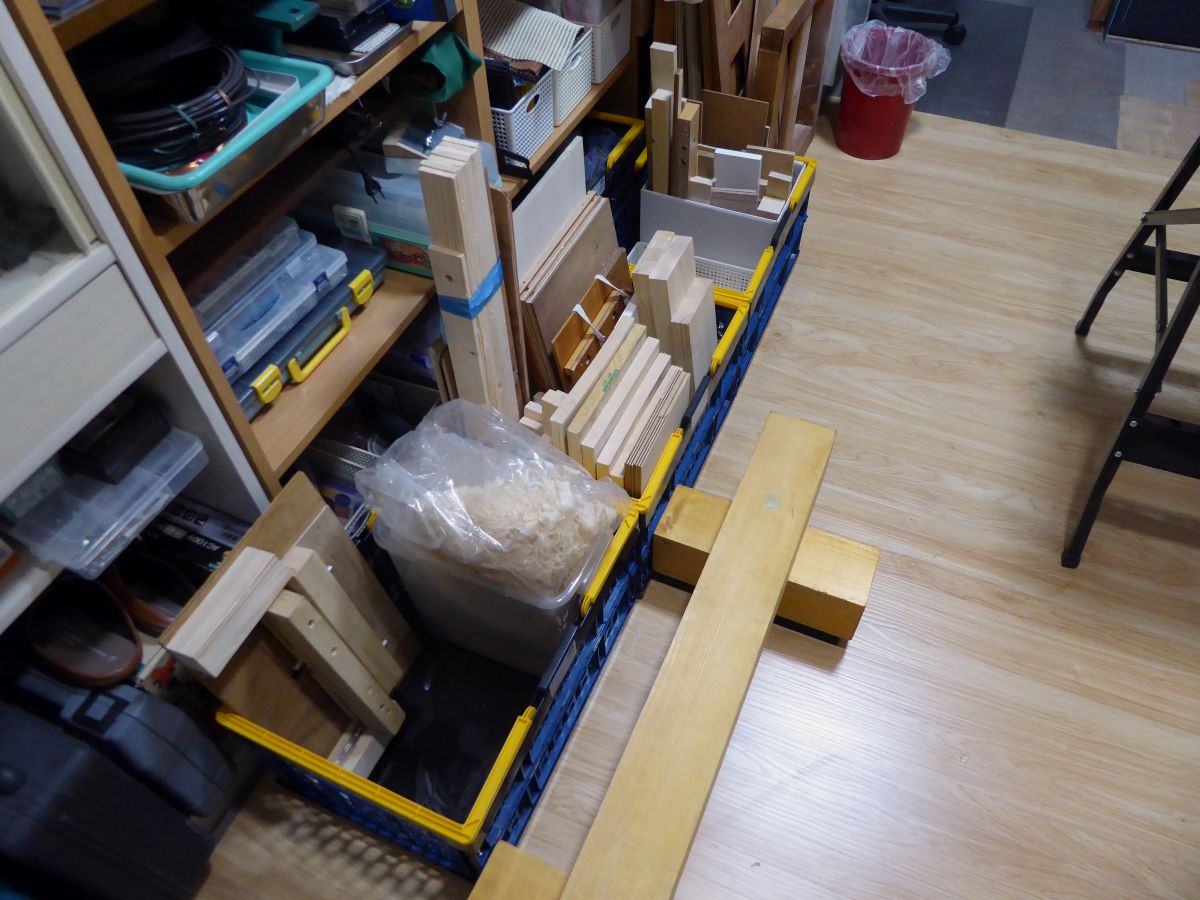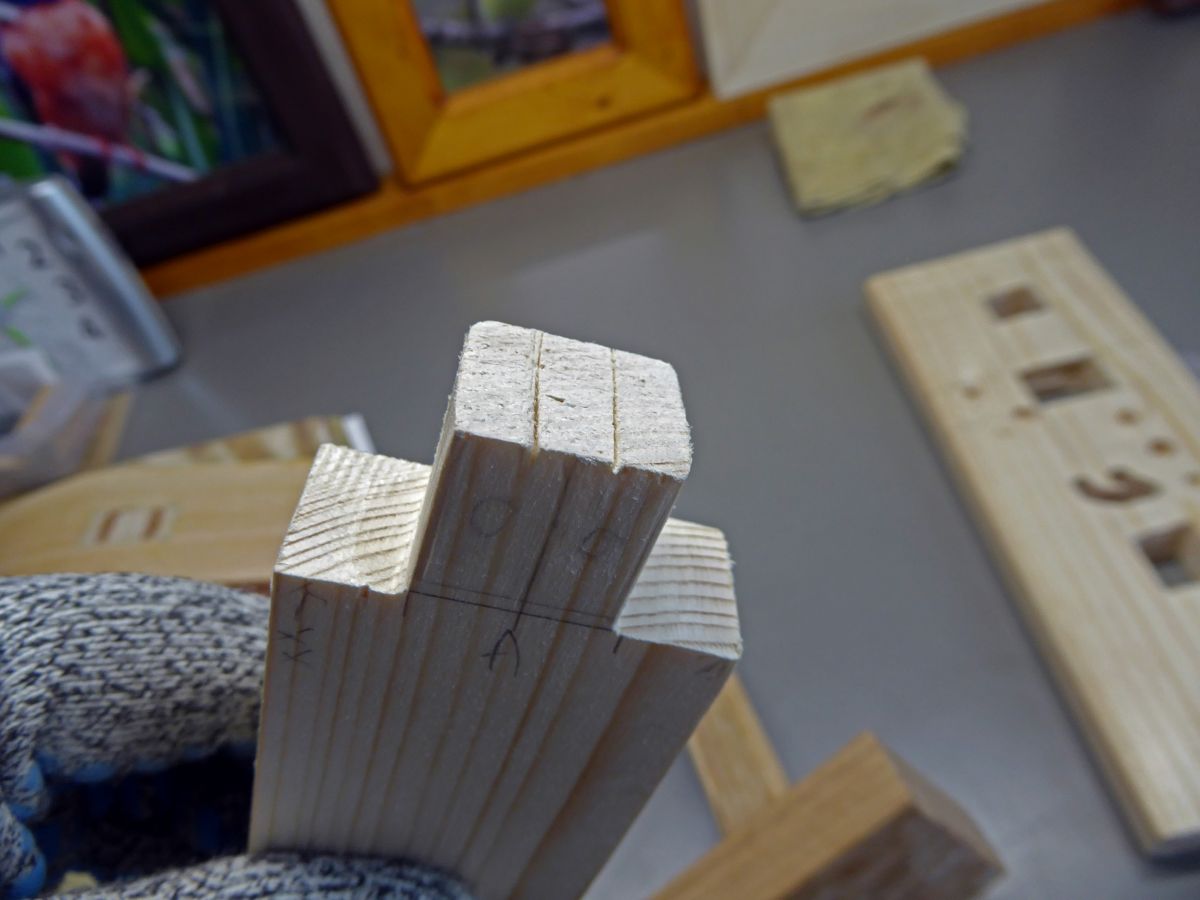 使用した木材は、以前にアラレ組みの練習用に100円ショップで購入した工作用の軟らかい木材です。