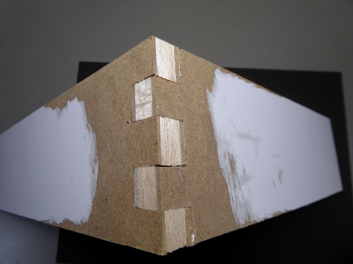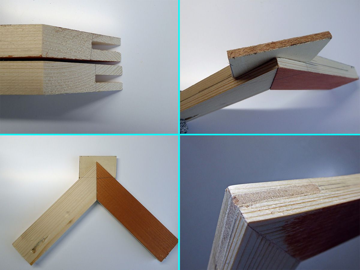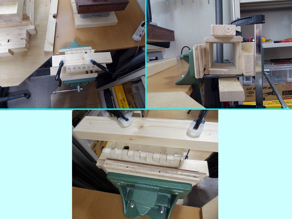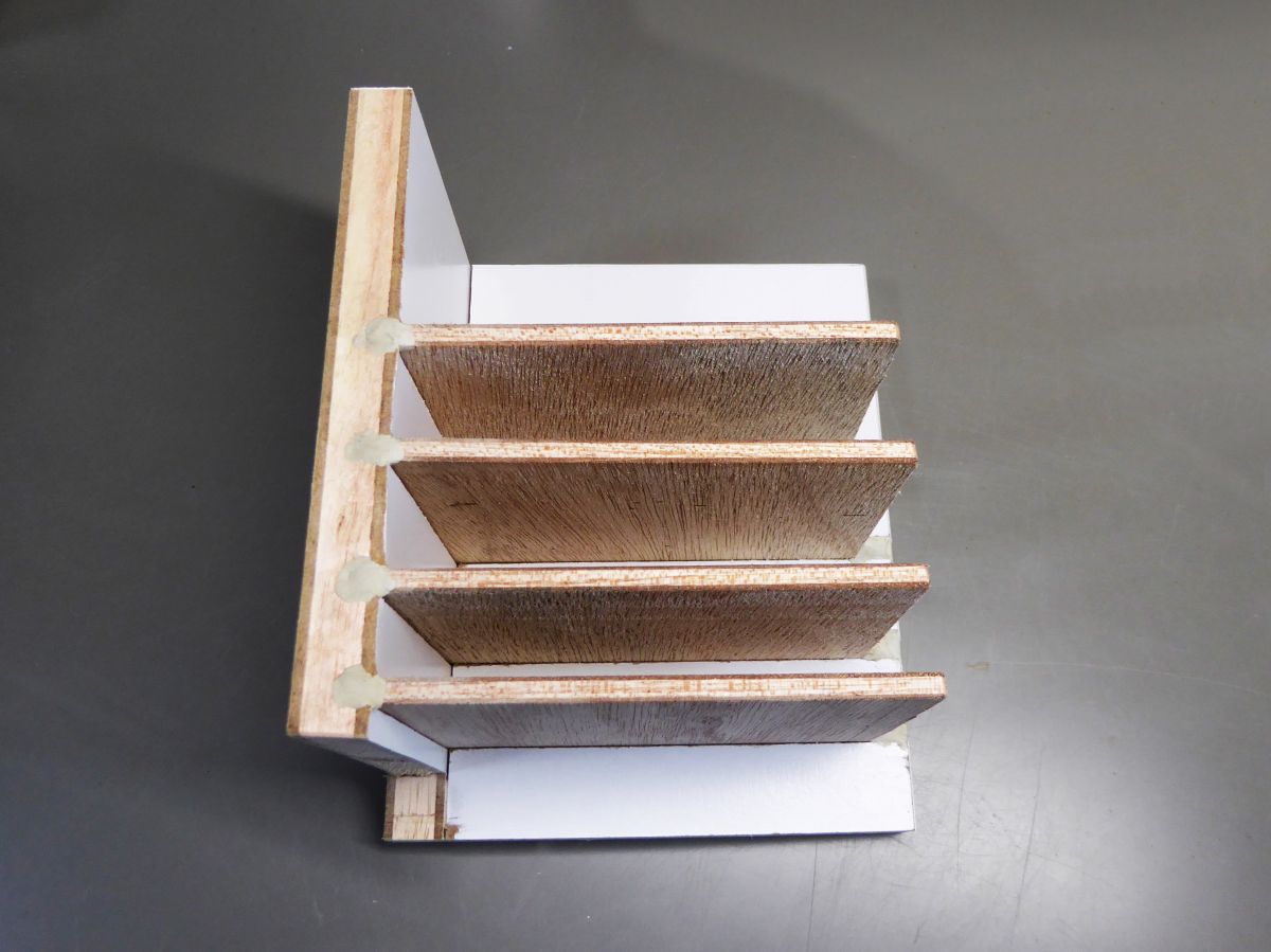 木工用ボンドを塗って組み立てたあとで、木工用パテで補修をしてみました。(写真6)