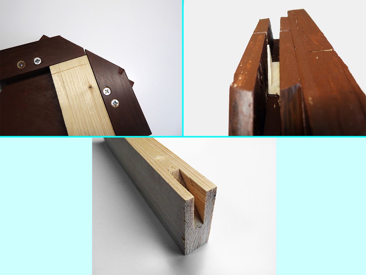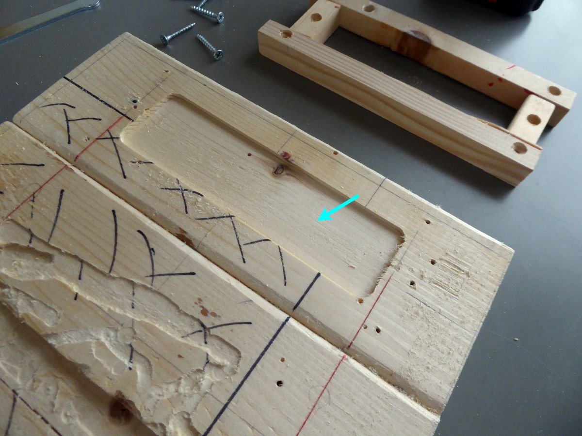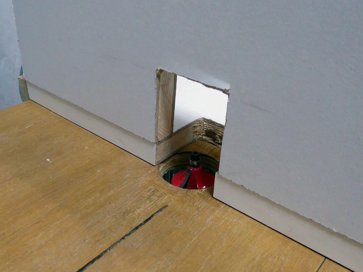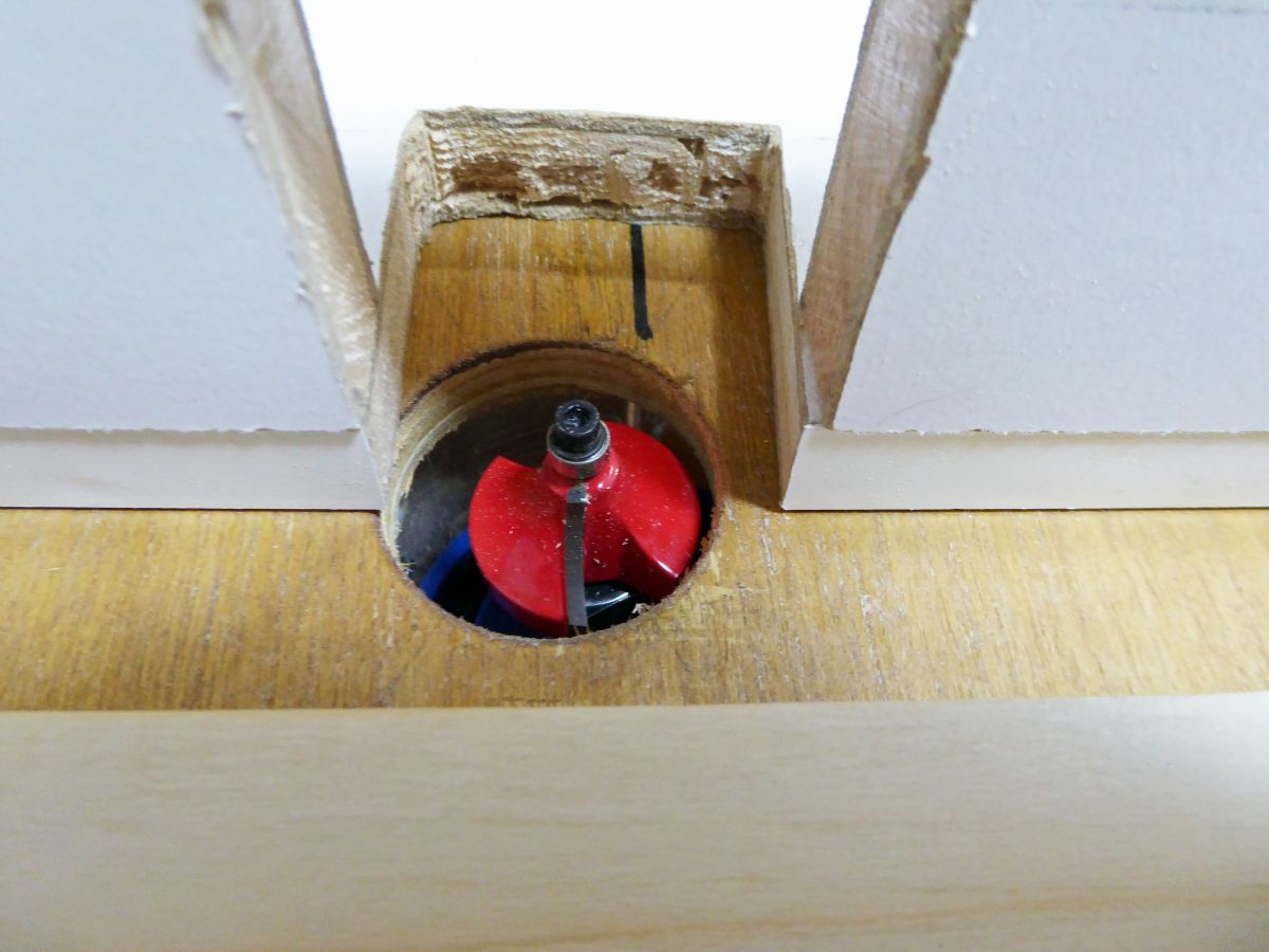 木材があまりにも軟らかいので、トリマーで溝を彫る作業で、木材の欠けが発生しています。